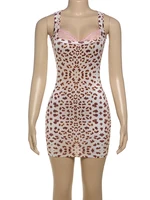 Nibber Square collar Dress Women Leopard Print Lace Sleeveless Sexy Mini Bodycon Hot Girl Midnight Club Party Hipster Outfits