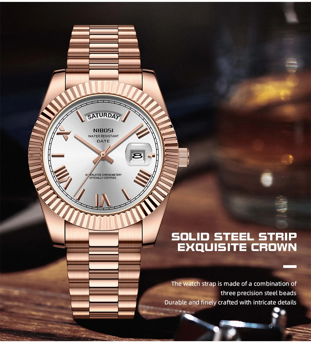 NIBOSI Fashion Men Watch Top Brand Luxury Wristwatch Week Date Miyota Quartz Men Watch Waterproof Steel Role Clock Reloj Hombre