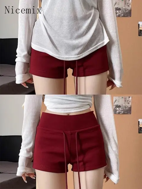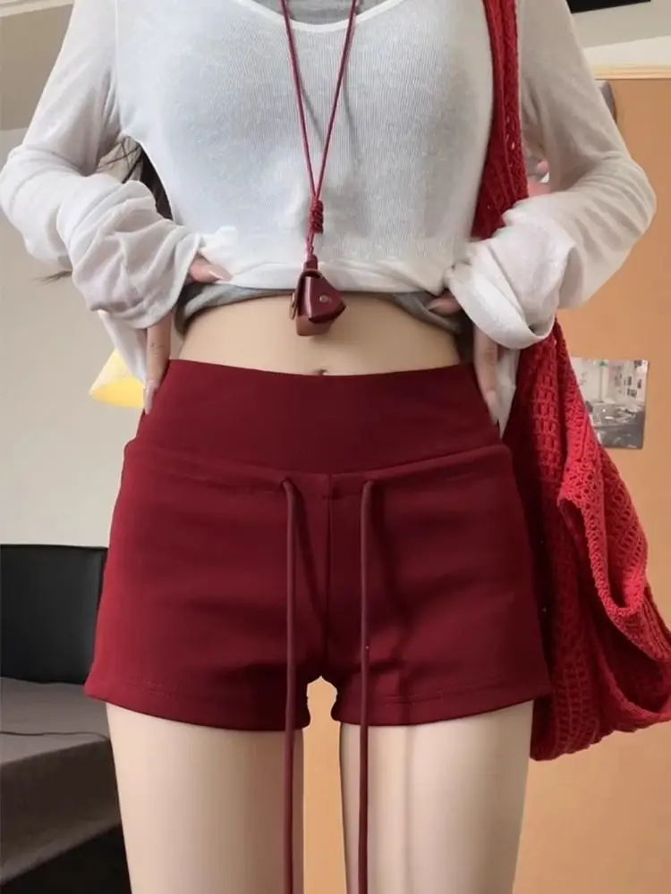 Nicemix Red Spicy Girl Casual Sports Shorts for Women Summer New Drawstring Yoga Wrap Hip Slimming High