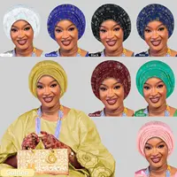 Nigeria Wedding Party Headgear African Headtie Turban Cap Muslim Hijab Already Made Women Auto Gele Head