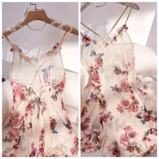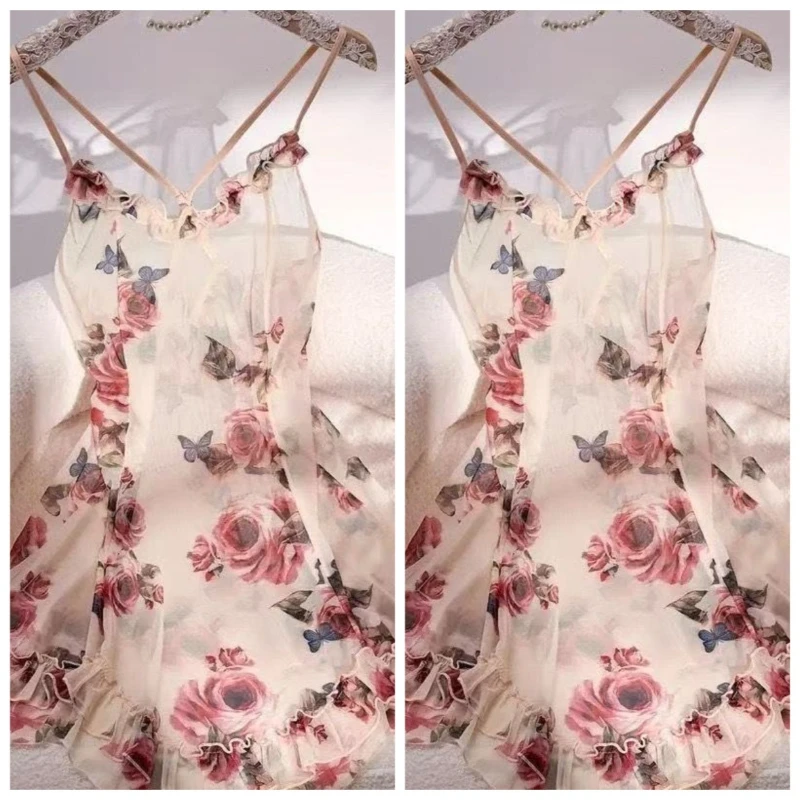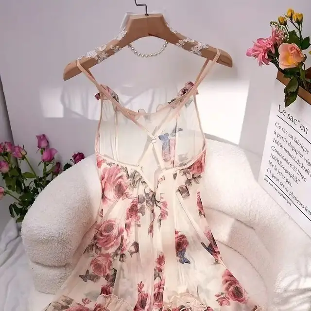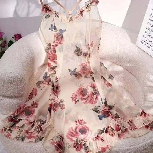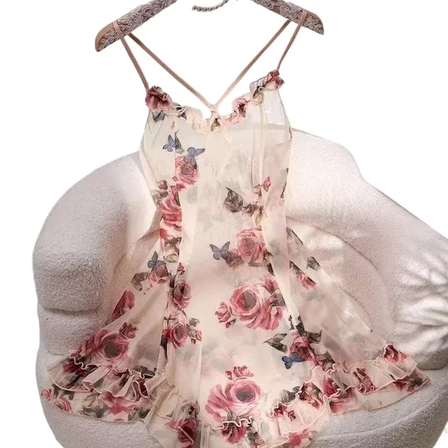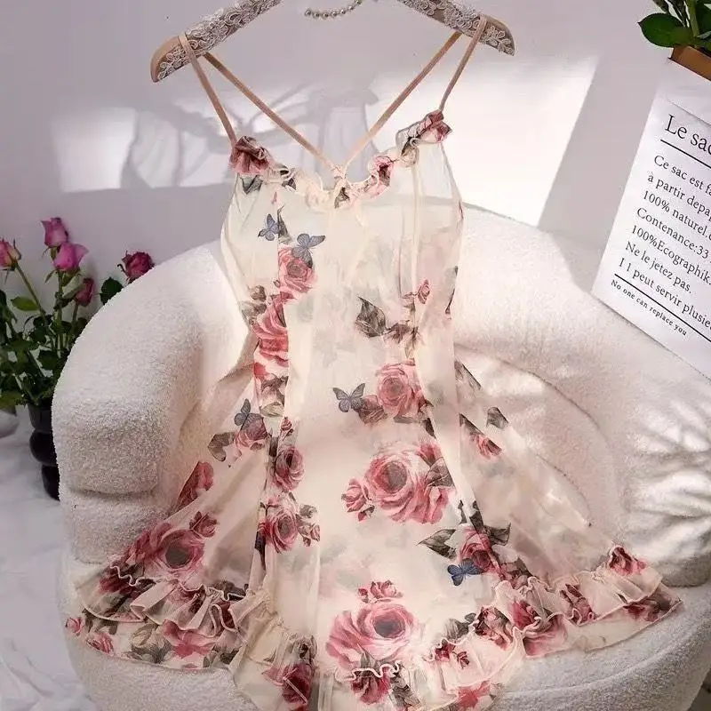 Nightdress Women’s Suspender Print Nightdress Lace Lace Pure Desire Temperament Sexy Pajamas New