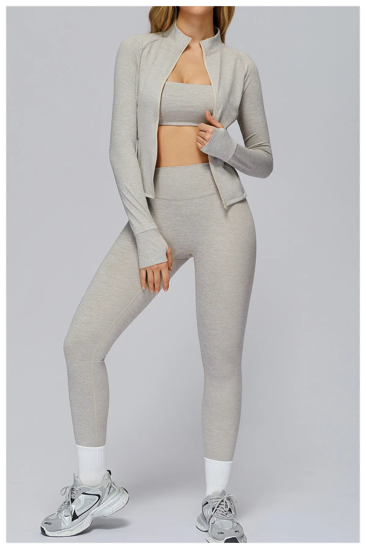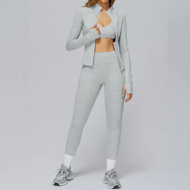 Ningyu 2/3PCS Yoga Set Sports Gym Set Women Outdoor Running Workout Clothes Long Sleeve Sports Bra Athletic