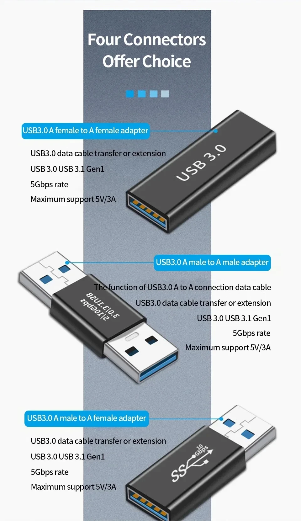 USB 3.0 coupler , super speed transmission rate up to 10Gbps (theoretical), transfer data rate may vary with different usb port.