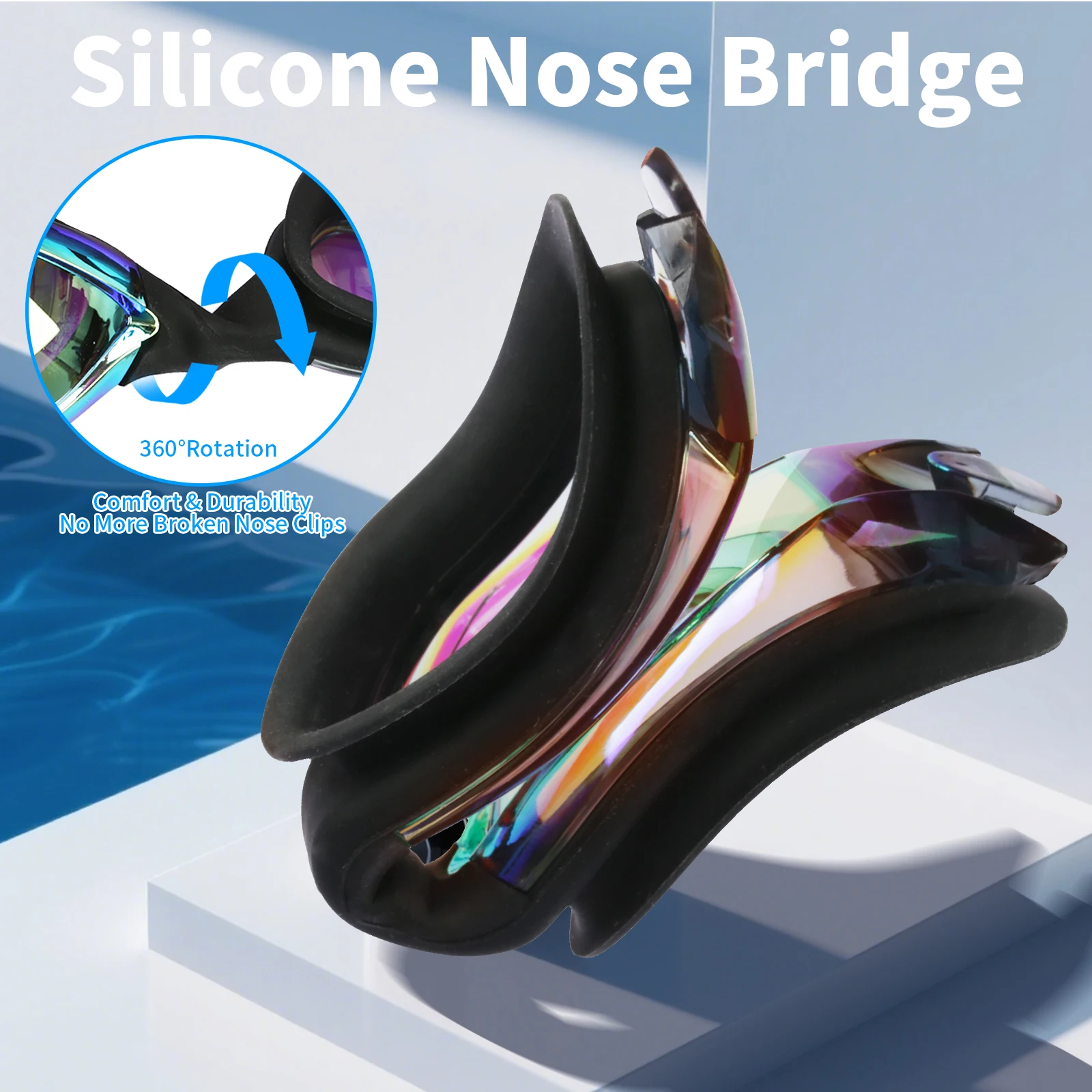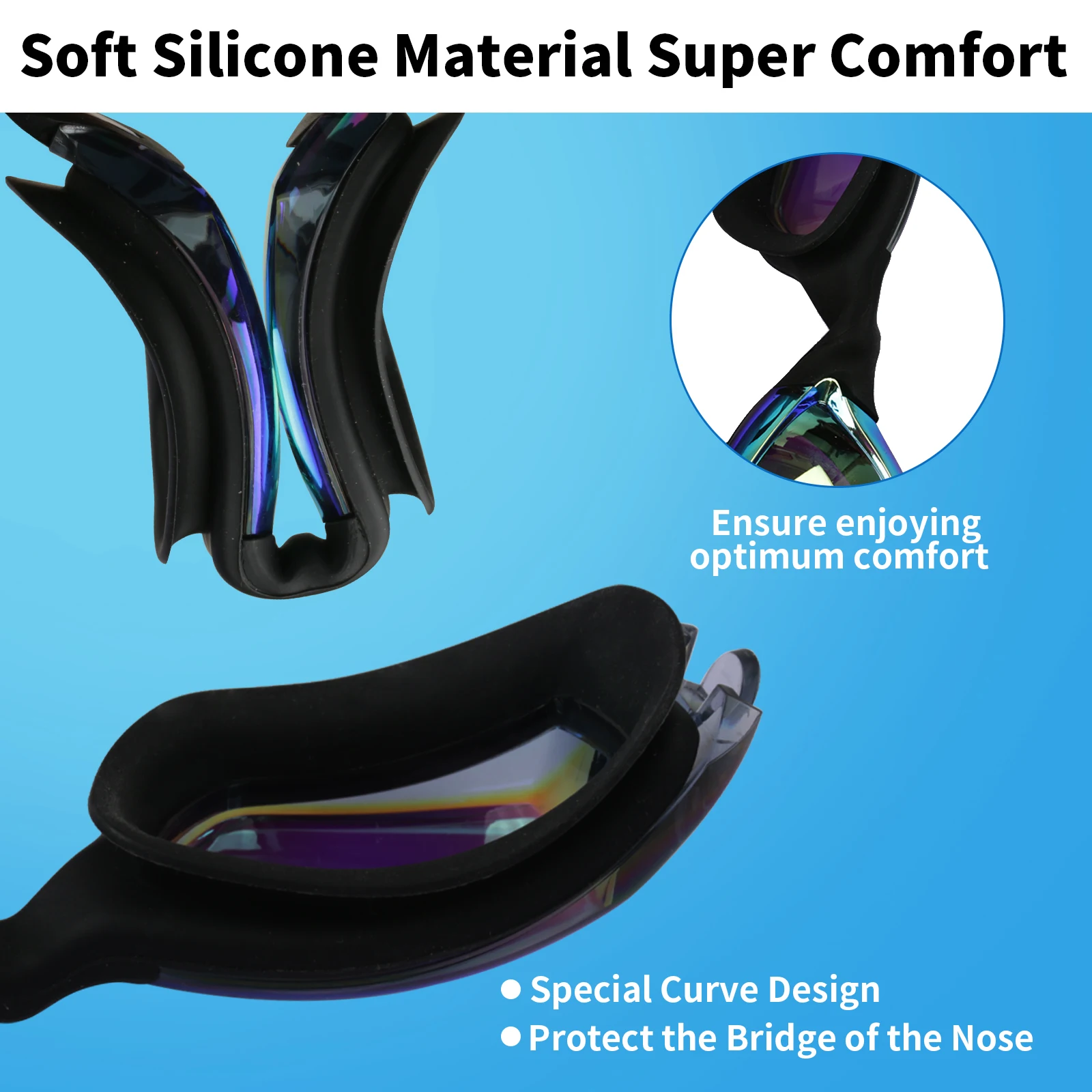 COMFORTABLE AND EASY TO ADJUST: The goggles swimming adult straps are made of soft high quality silicone, easy to adjust for tightness and easy to release. the flexible silicone frame and improved higher nose rest provide extreme comfort and will never hurt your nose or leave marks on your face.