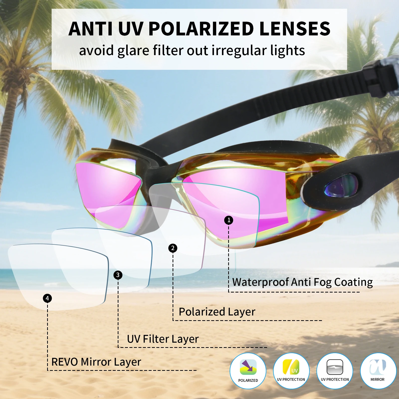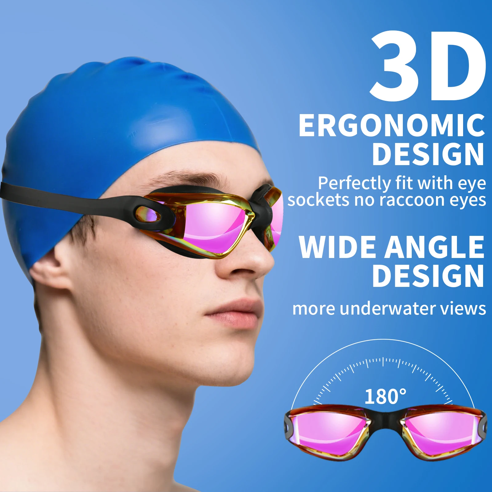 PANORAMIC & SUPER CLEAR VIEW:A wide 180-degree view gives you a clear and long-range view of swimming underwater. With the multi-coating protective lenses, you get no vertigo or glare experience during outdoor swimming time.