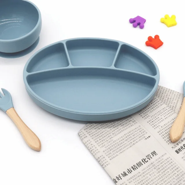 Non-Slip Silicone Divided Plate BPA Free Waterproof Suction Cup Dinner Plate Lightweight Dishes Feeding