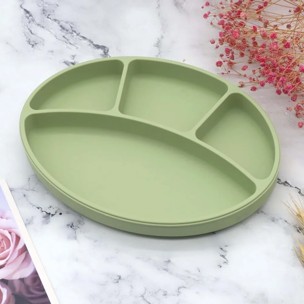 Non-Slip Silicone Divided Plate BPA Free Waterproof Suction Cup Dinner Plate Lightweight Dishes Feeding Plate