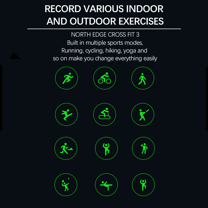 NORTH EDGE CROSS FIT 3 Built in multiple sports modes,Running, cycling, hiking, yoga and so on make you change everything easily