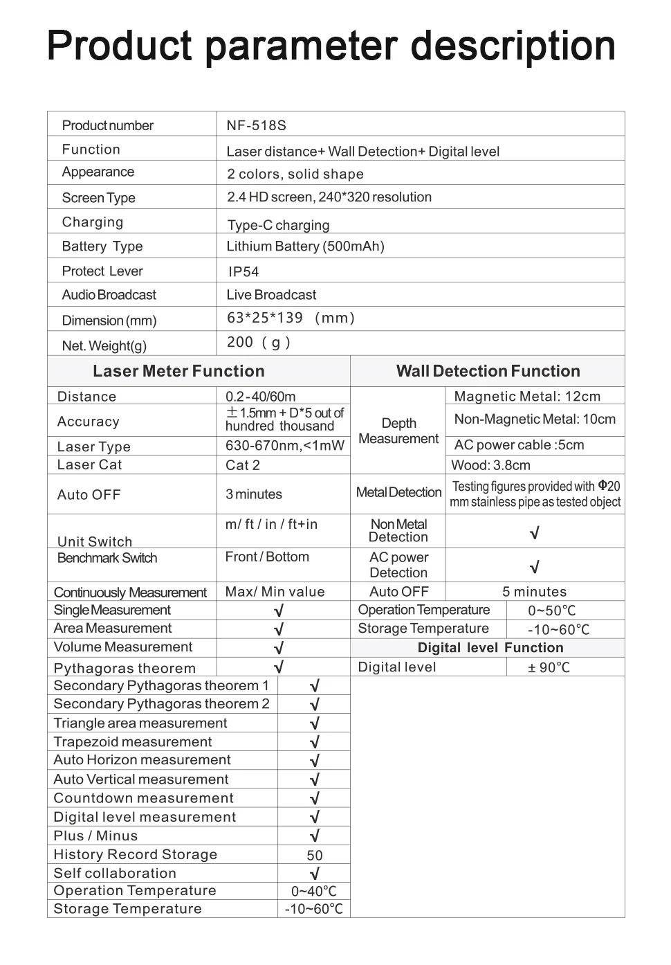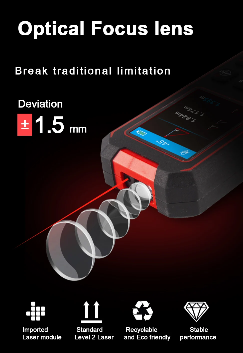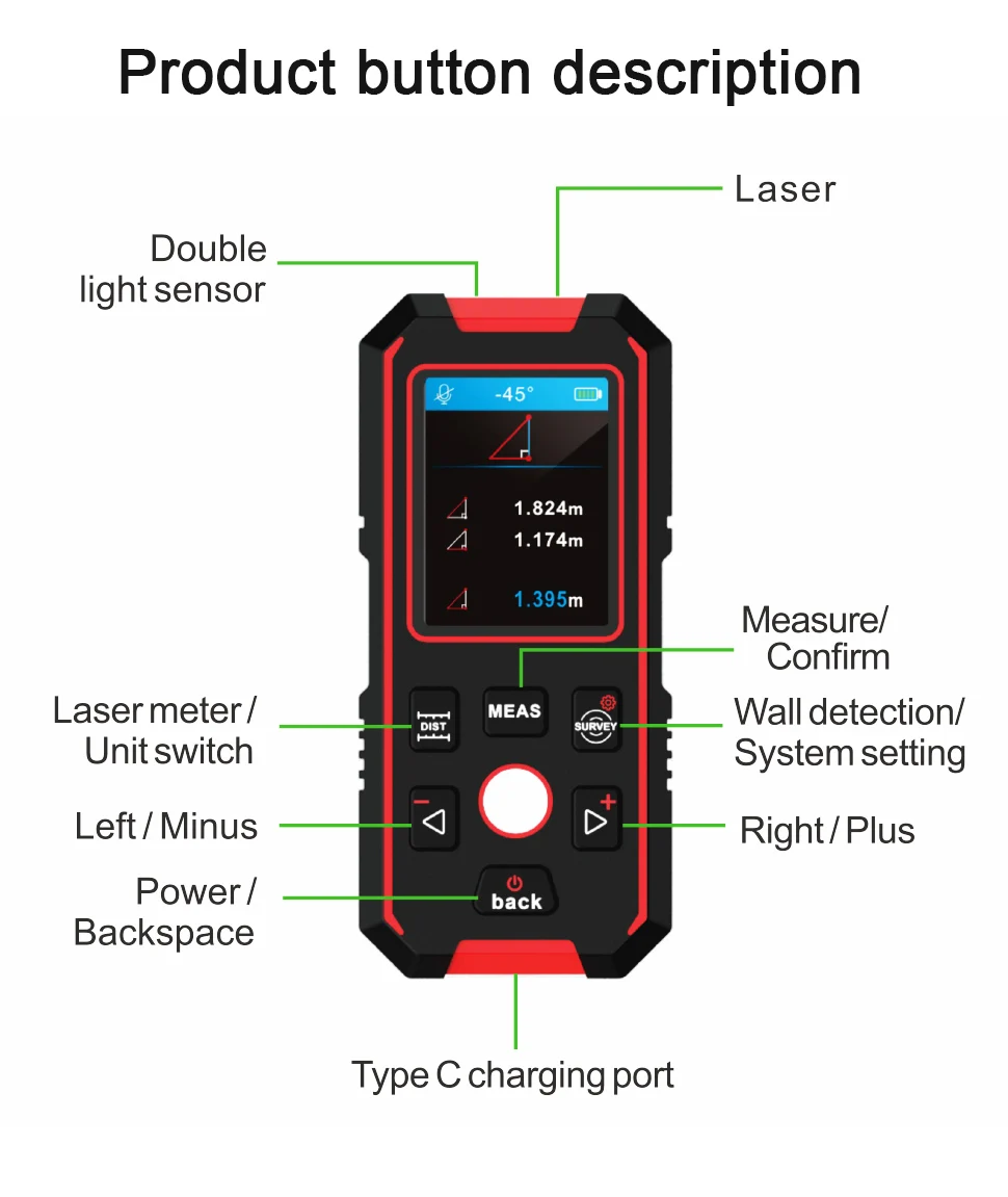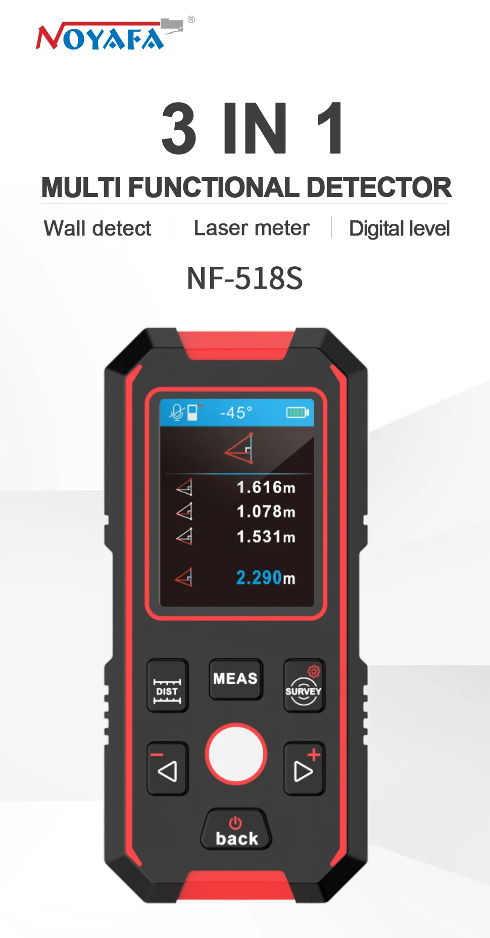 1. 【Three Functions】 Wall Detection Function, Laser Ranging Function, Digital Level Function.