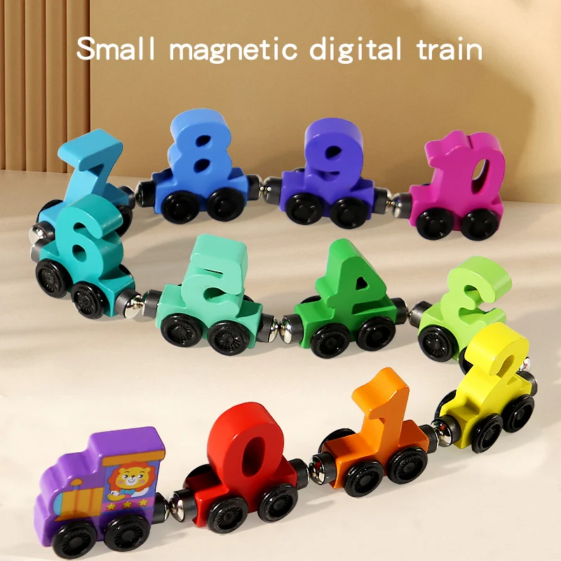 Number Digital Magnetic Wooden Train Toys Colorful Building Blocks Educational Hand-eye Coordination