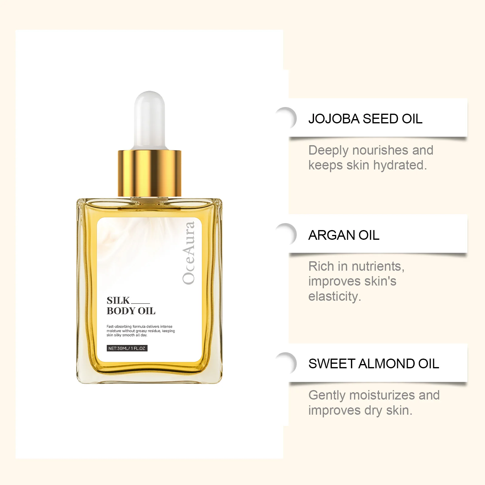 OceAura Silk Body Oil Tighten Skin Firming Moisturizing Body Smooth Jojoba Oil Organic Natural Sweet Almond Oil Argan Body Oil 30ml