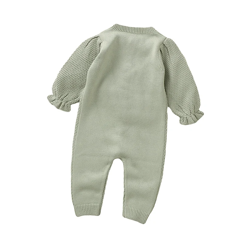 OEKO-TEX Floral Print Baby Girls Long Sleeve Rompers Breathable Newborn One-piece Outfits Knit Acrylic