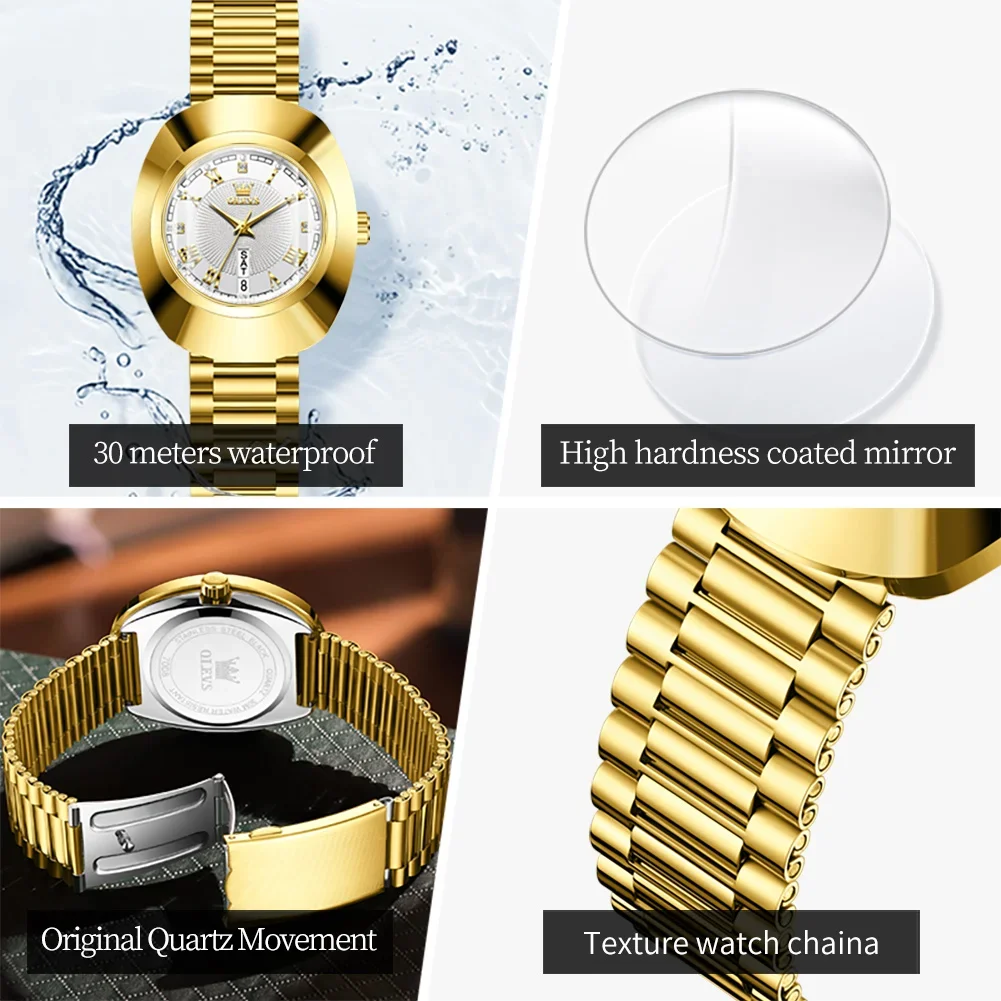OELVS Original Imported Quartz Women's Watch Tungsten Steel Case Luxury Gold Fashion Elegant Diamond Waterproof Women's Watch