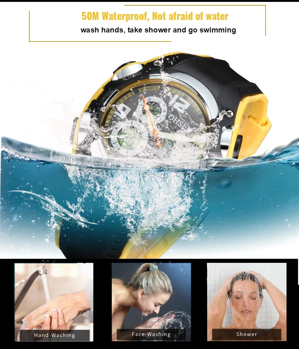 The waterproof depth is up to 50M (Don’t press any button in the water)