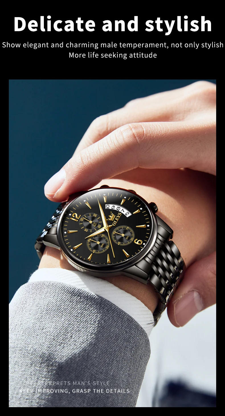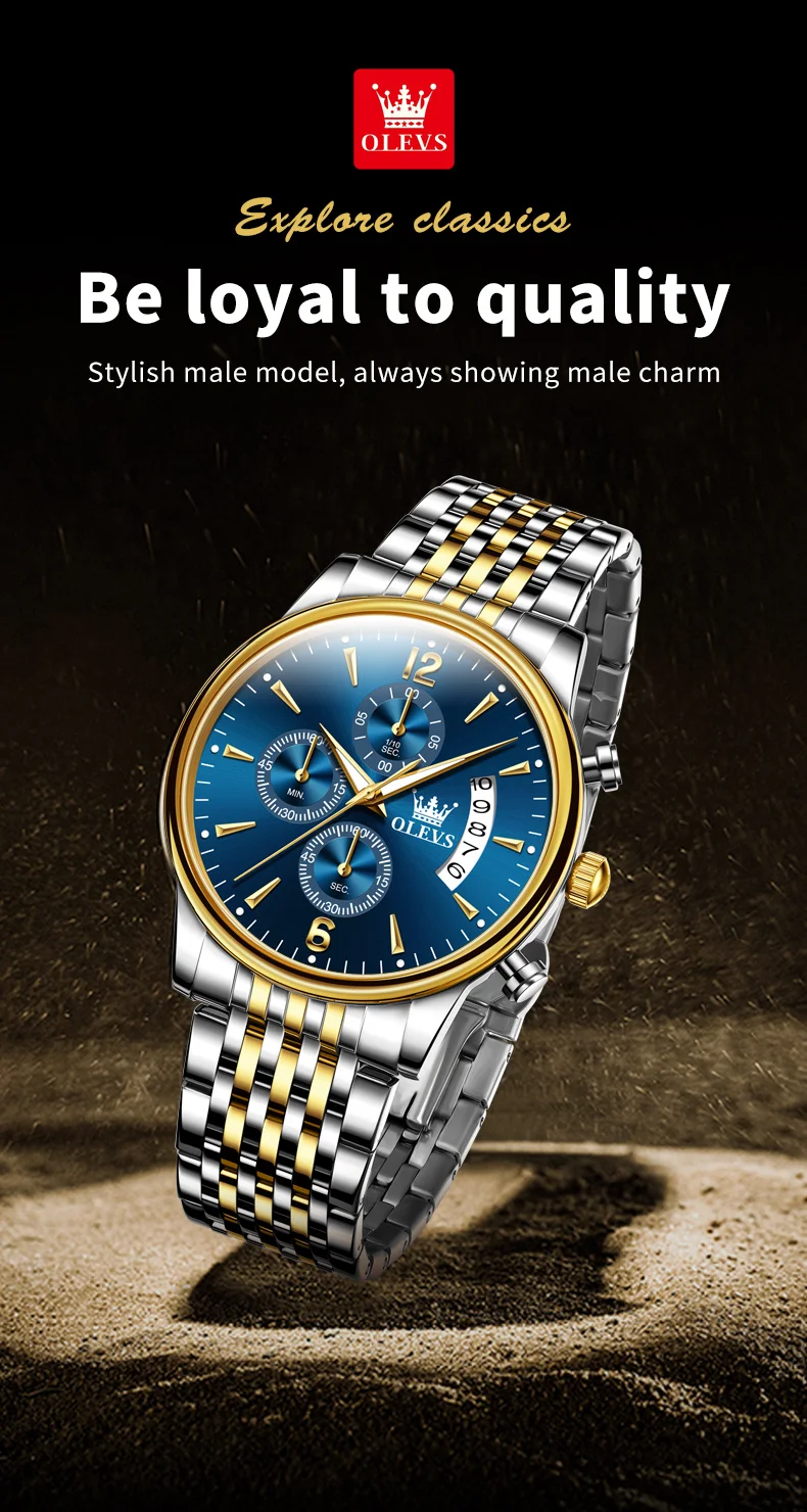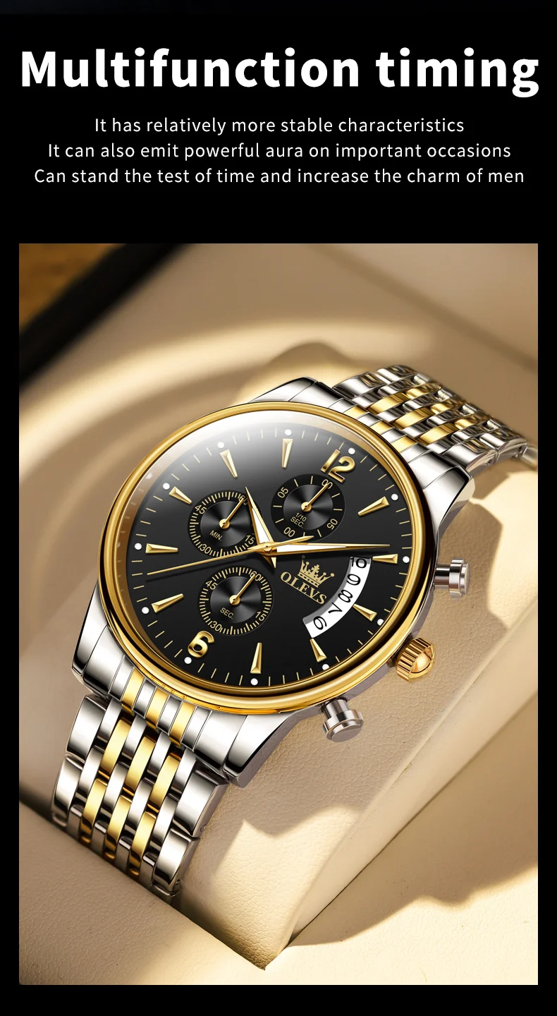 OLEVS 2867 Brand Original Stainless Steel Man Watch Chronograph Auto Date Waterproof Multifunction Luxury