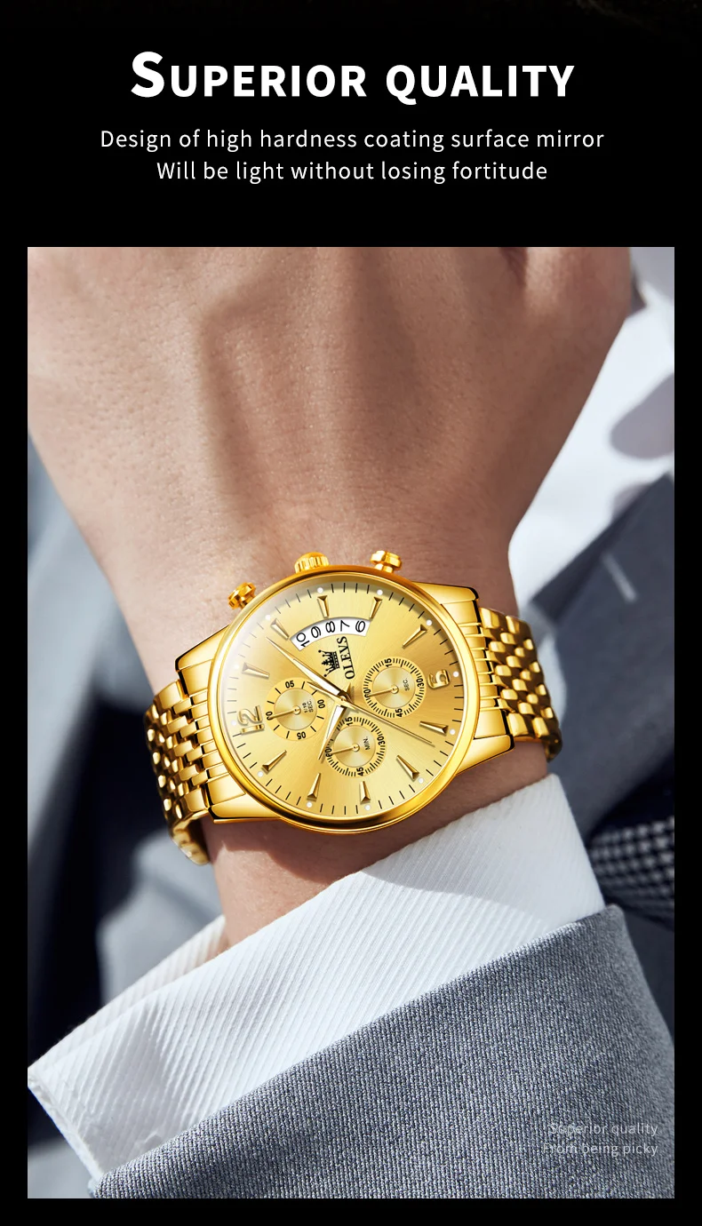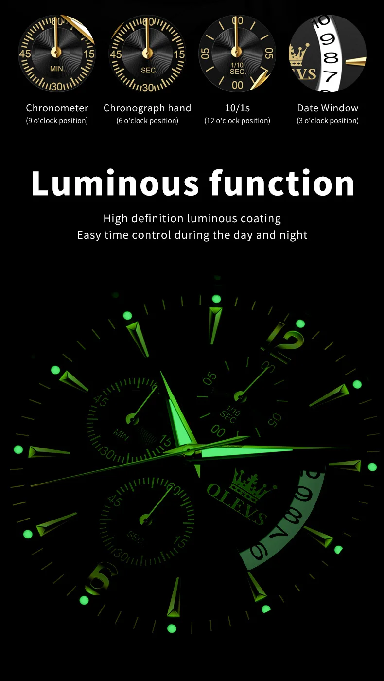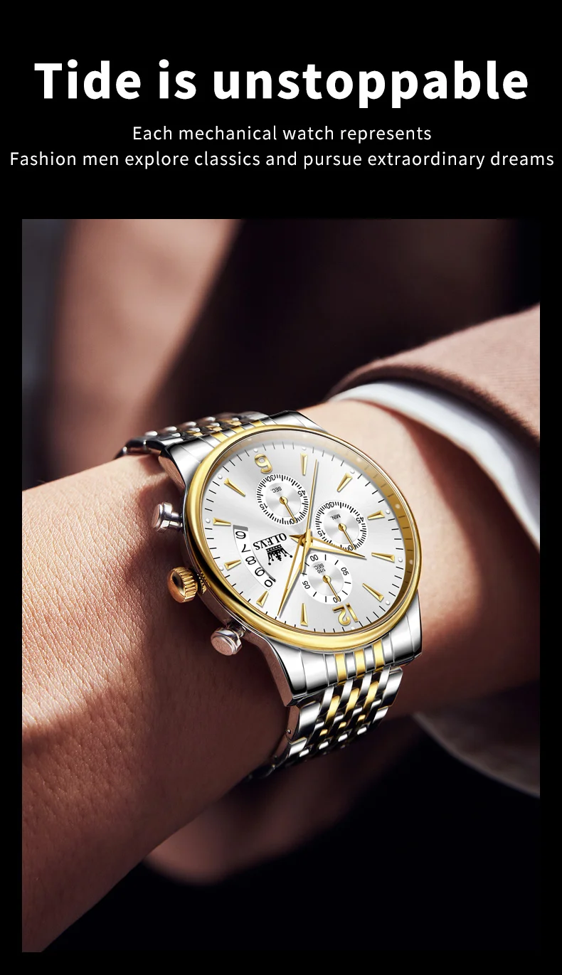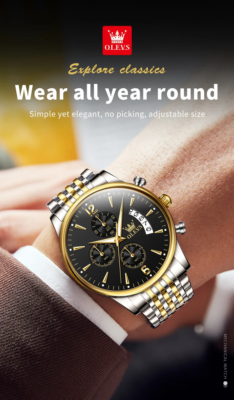 OLEVS 2867 Brand Original Stainless Steel Man Watch Chronograph Auto Date Waterproof Multifunction Luxury