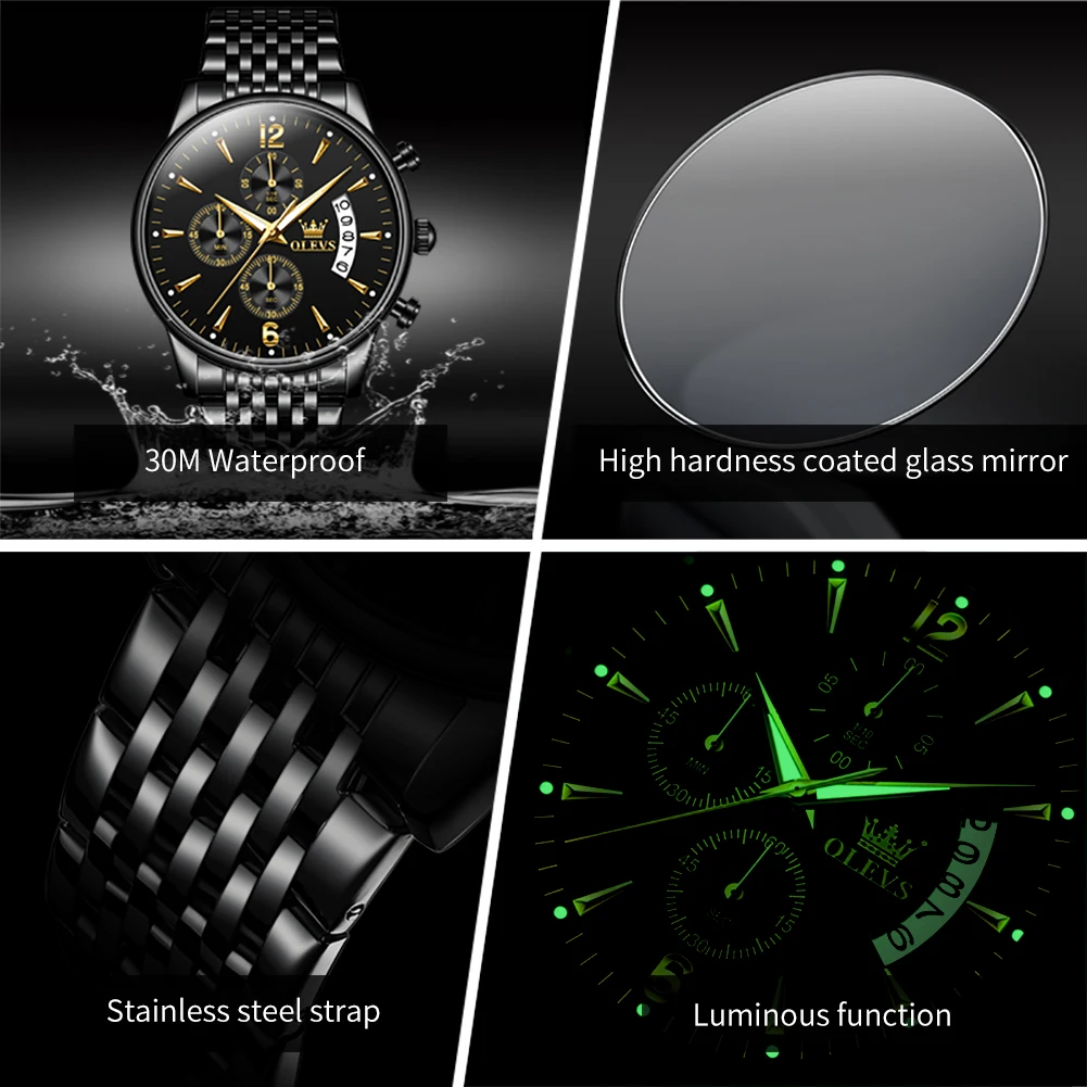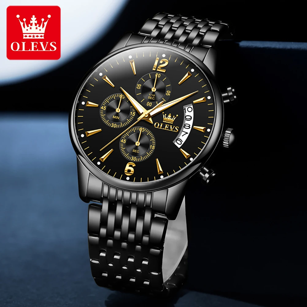OLEVS 2867 Luxury Quartz Watch for Men Stainless Steel Waterproof Luminous Chronograph Auto Date Multifunction