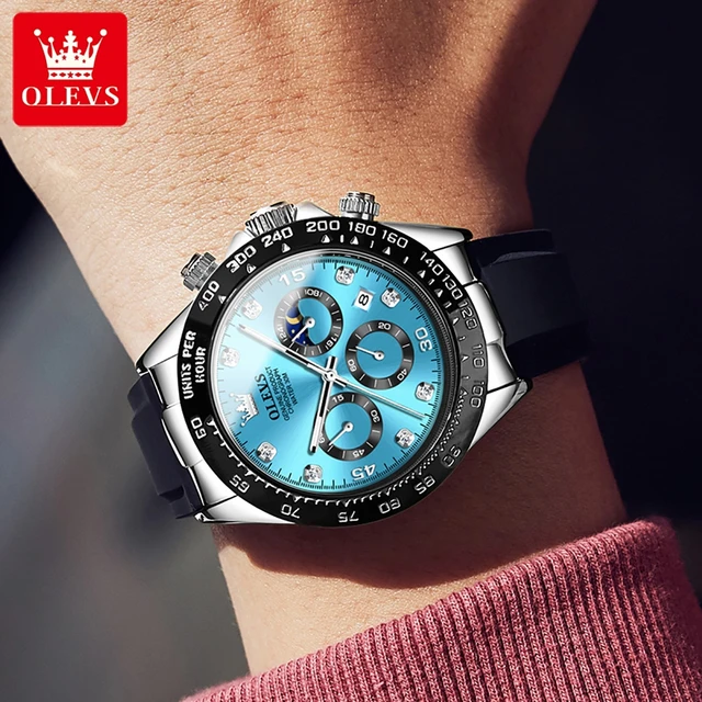OLEVS 2875 Original Luxury Brand Quartz Watch for Men Silicone Strap Chronograph Auto Date Waterproof