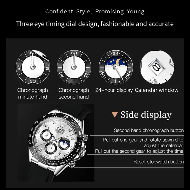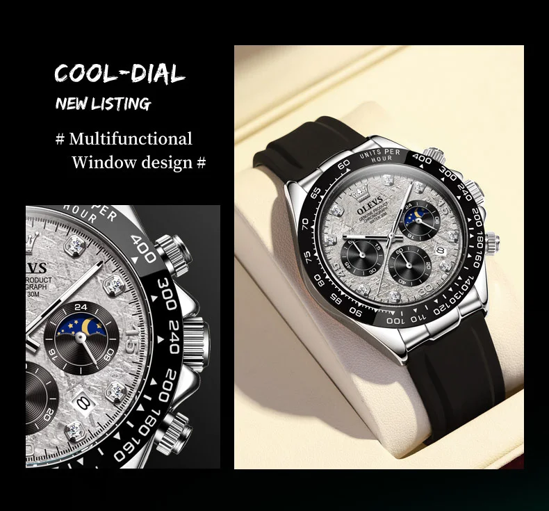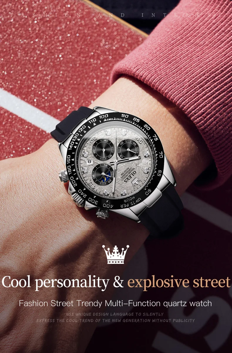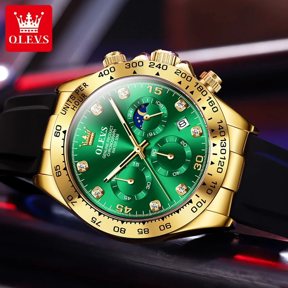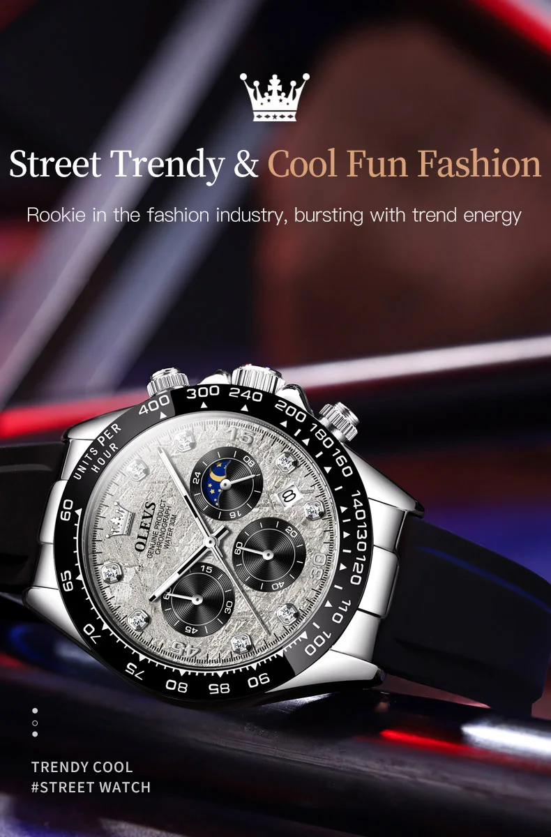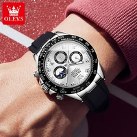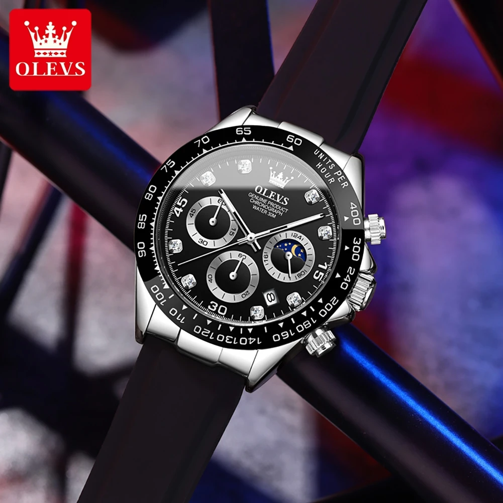 OLEVS 2875 Original Luxury Brand Quartz Watch for Men Silicone Strap Chronograph Auto Date Waterproof Moon Phase Man Sport Watch
