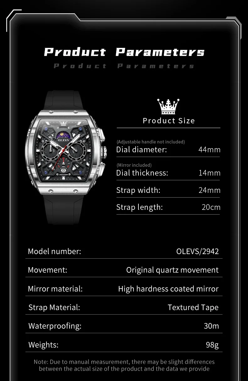 OLEVS 2942 Mens Watch Quartz Watch Multifunctional Chronograph Watches For Men 30M Waterproof Luminous