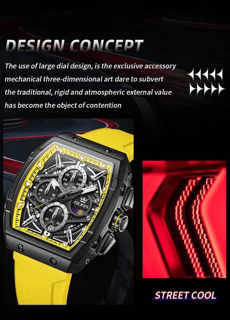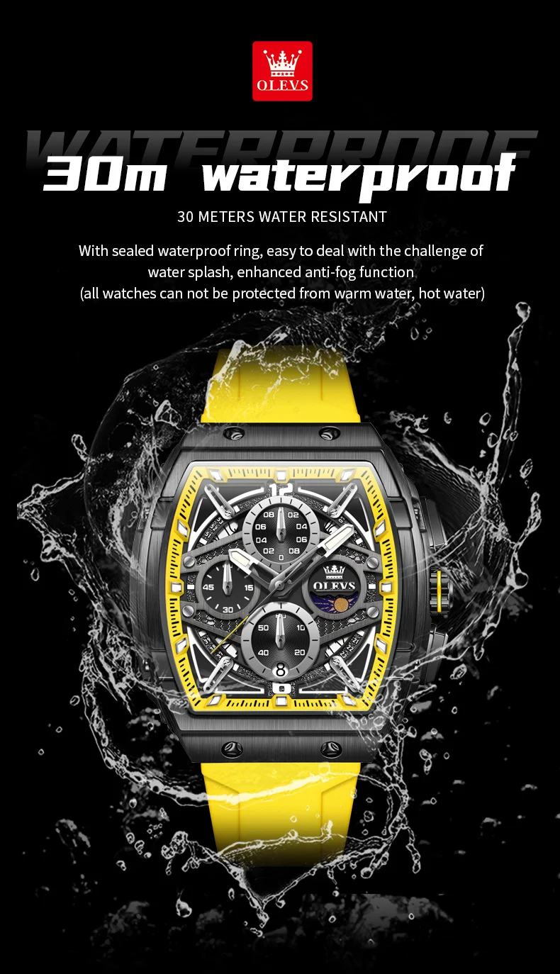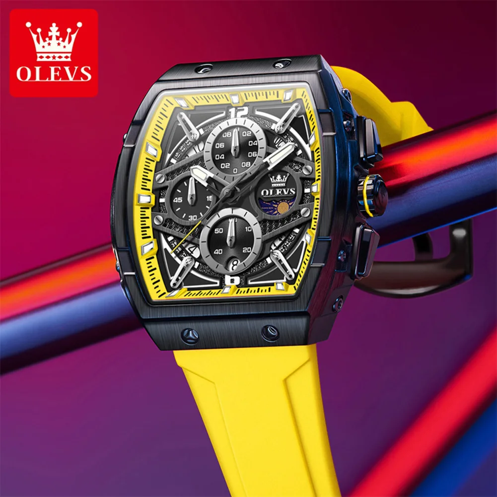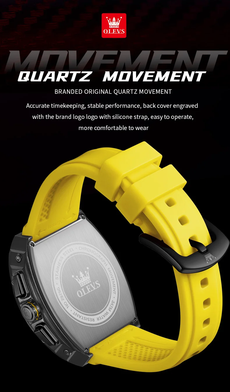 OLEVS 9966 Quartz Fashion Watch Gift Stainless Steel Watchband Square-dial Wristwatch Week Display Calendar