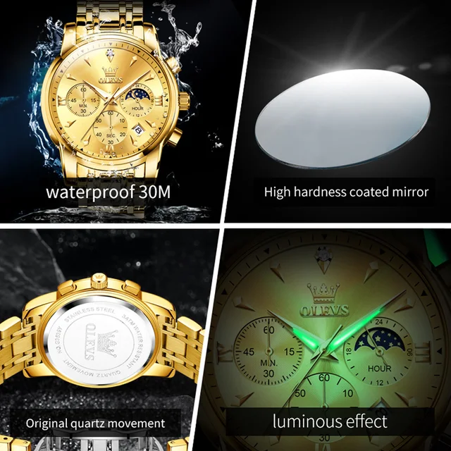 OLEVS 2867 Luxury Quartz Watch for Men Stainless Steel Waterproof Luminous Chronograph Auto Date Multifunction Men's Wristwatch