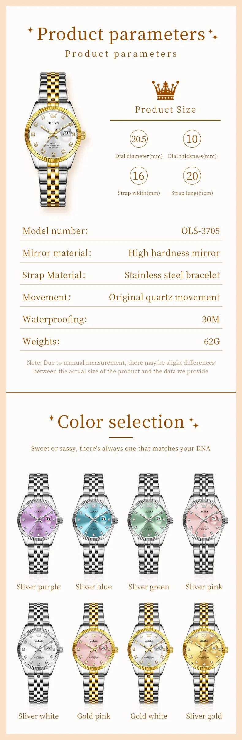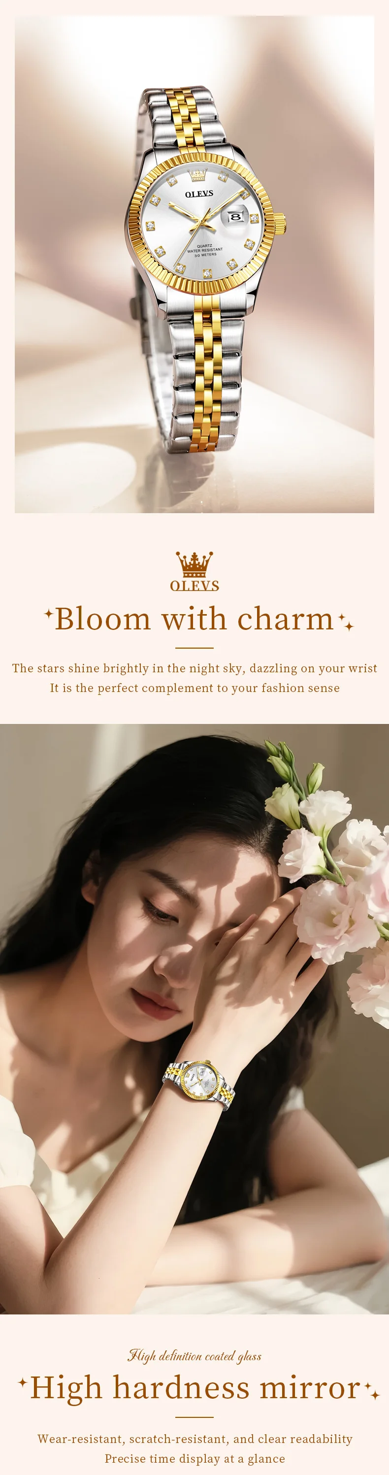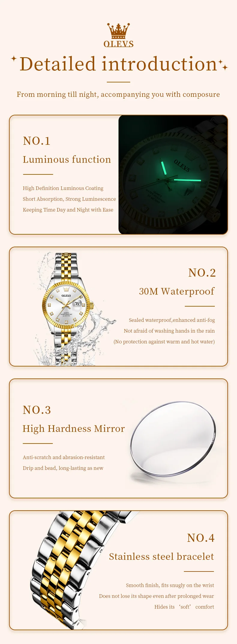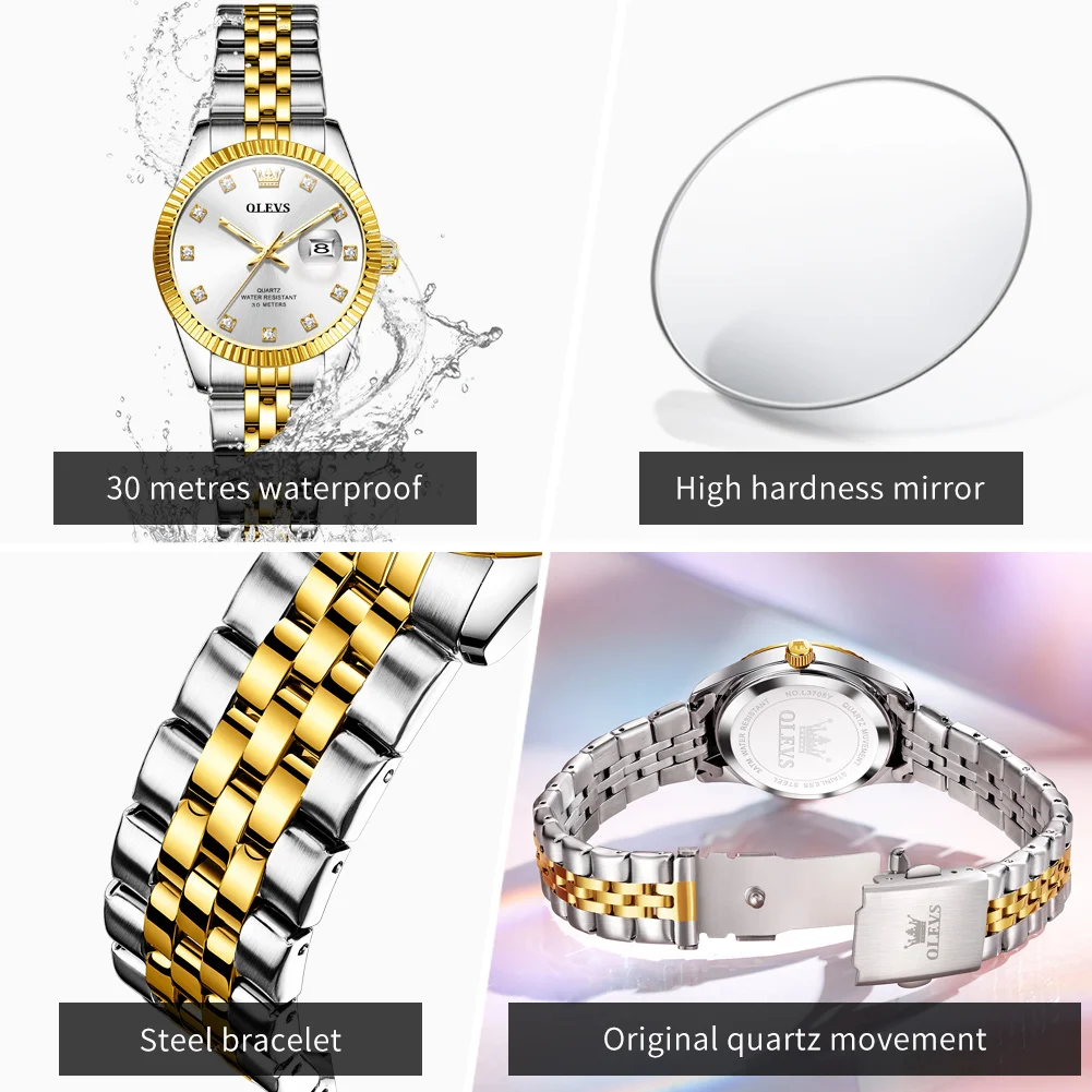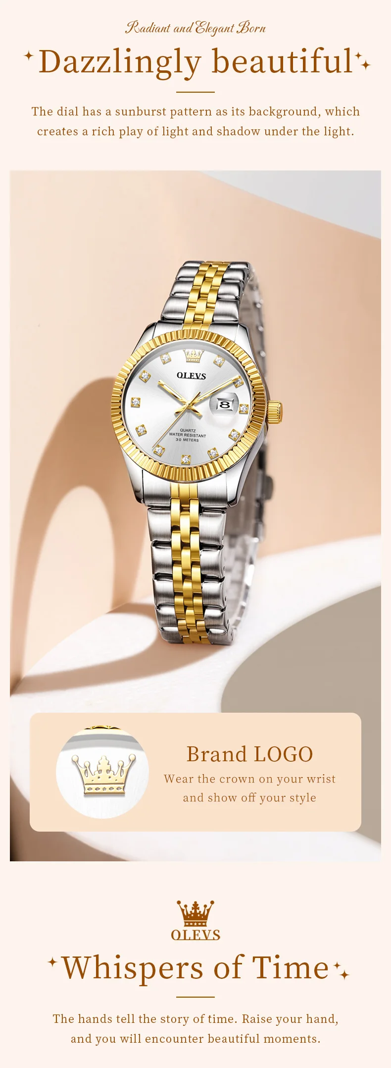 OLEVS 3705 Women Watch Original Gold Elegant Quartz Wristwatch Waterproof Luminous Diamond Date Watches For Women Box Gift