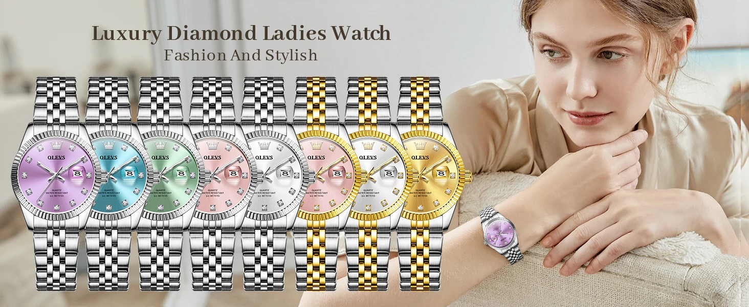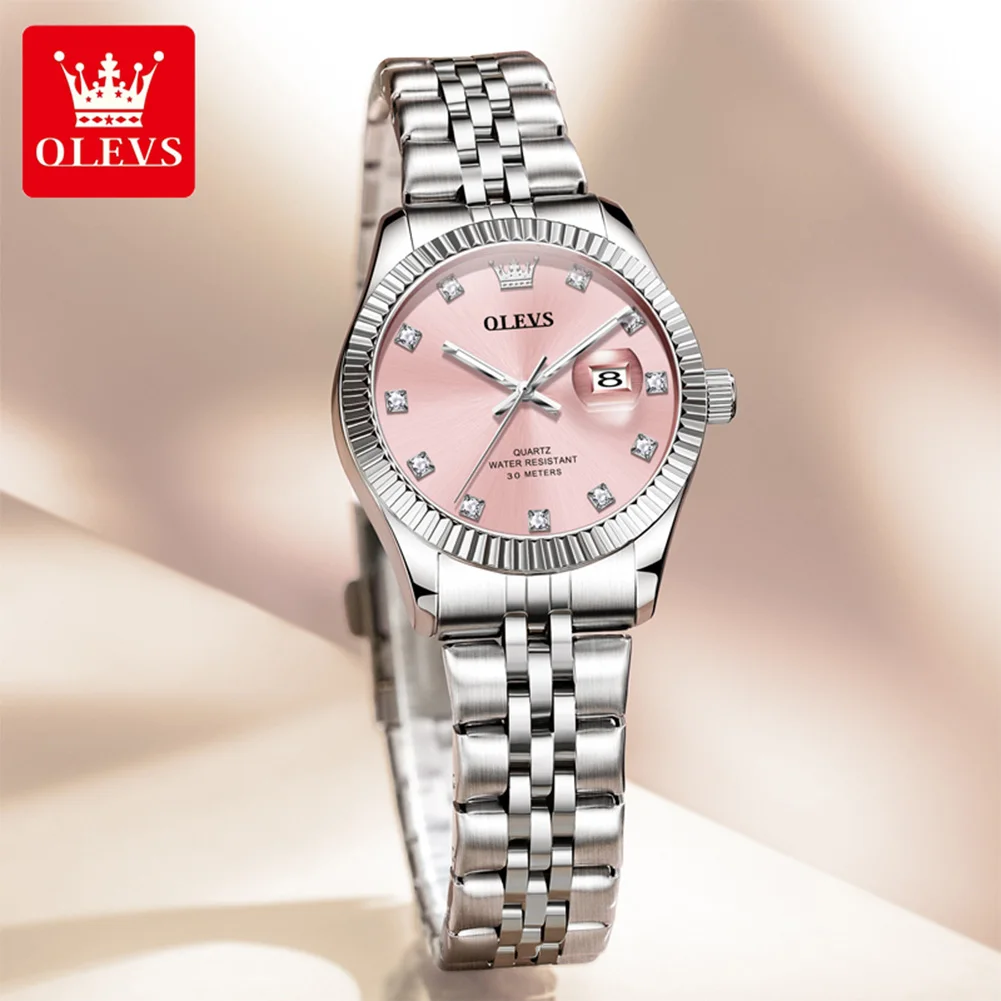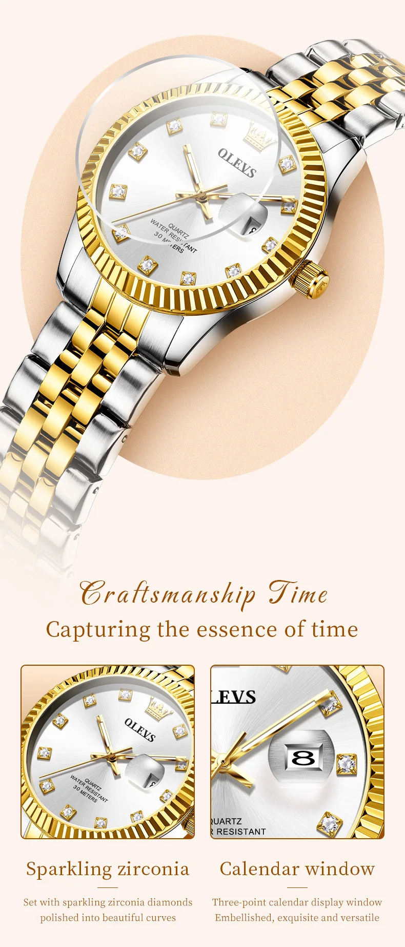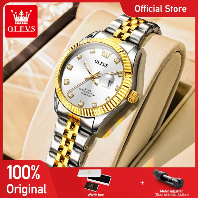 -93%OLEVS 3705 Women Watch Original Gold Elegant Quartz Wristwatch Waterproof Luminous Diamond Date Watches For Women Box Gift