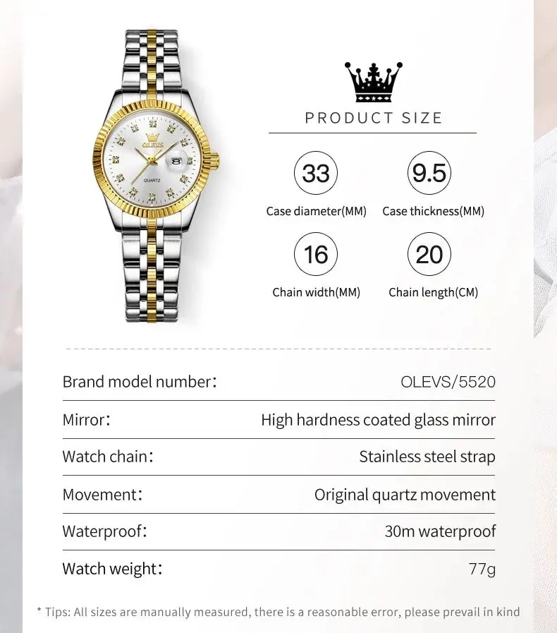OLEVS 5526 Women Watch Diamond Scale Quartz Fashion Ladies Wrist Watches Date Waterproof Luminous Luxury Dress Watch For Women