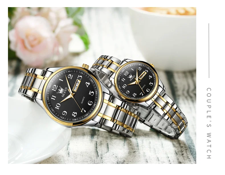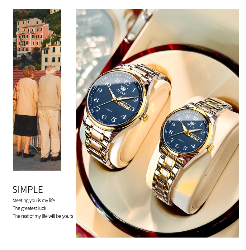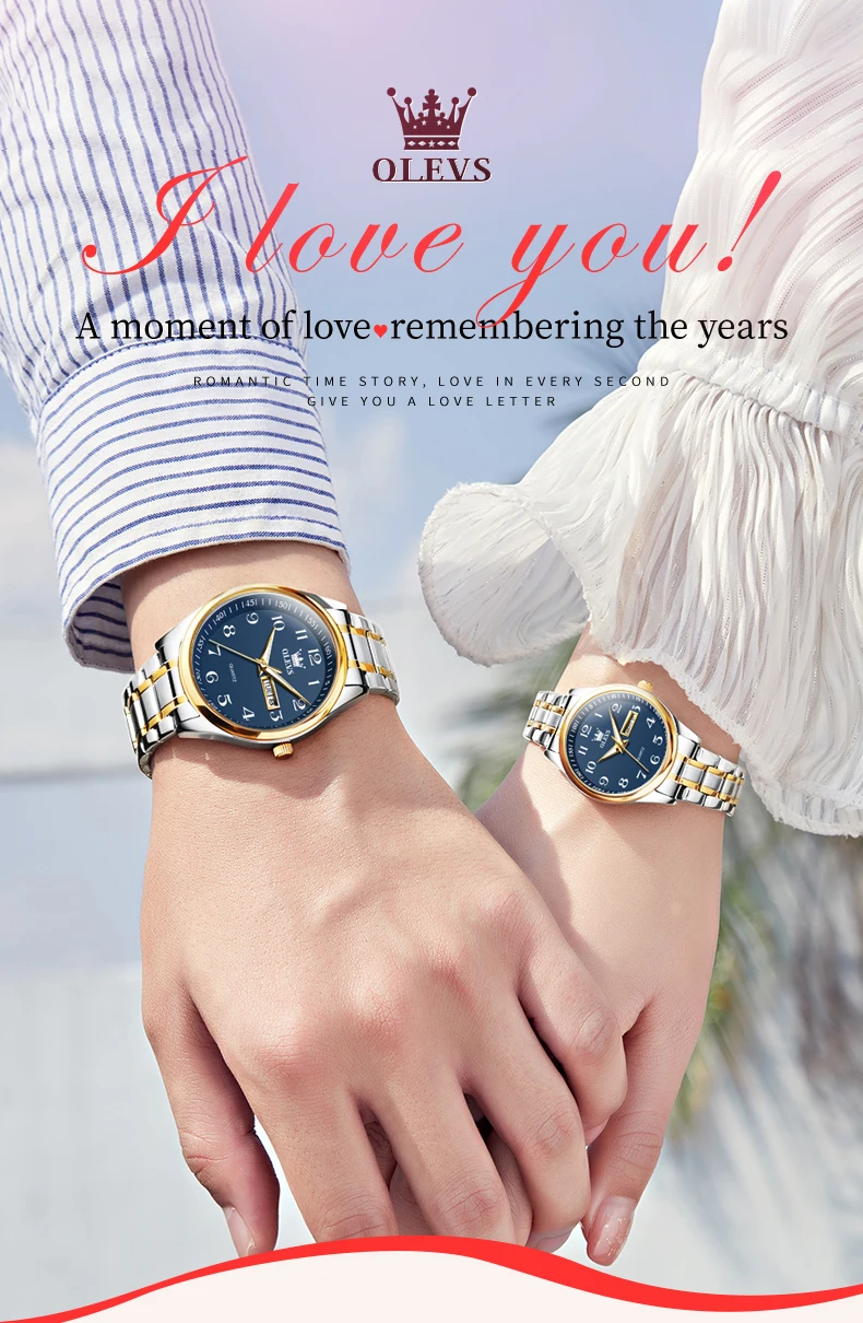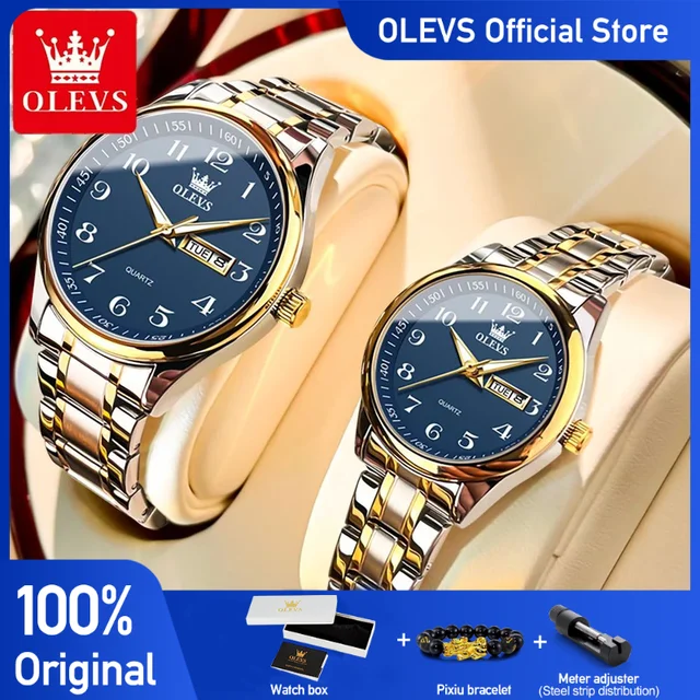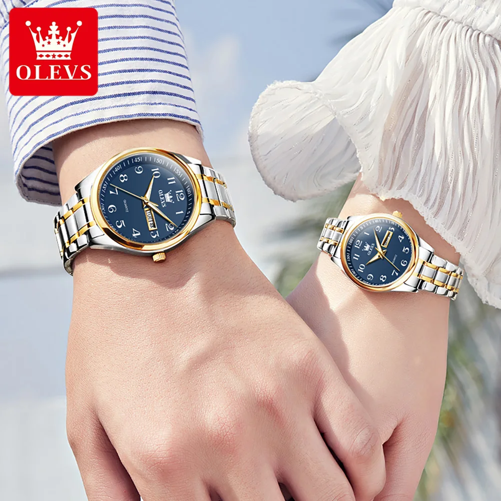 OLEVS 5567 Brand Couple Quartz Watches Waterproof Luminous Wristwatch for Lover Vip Link
