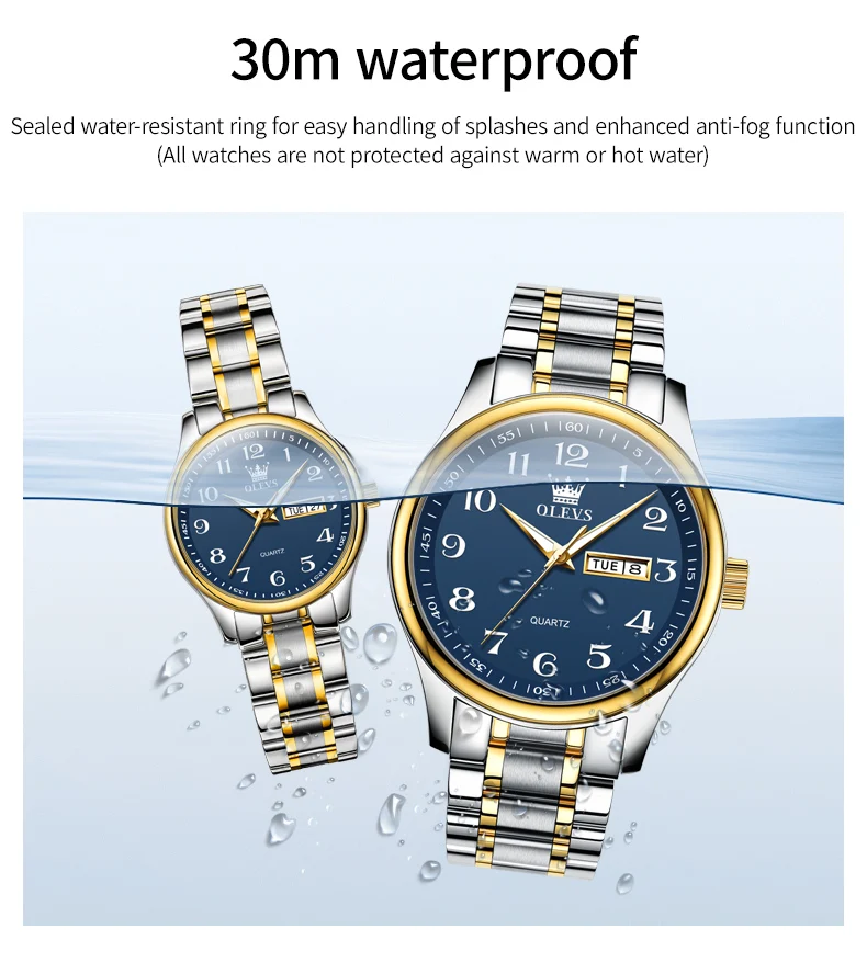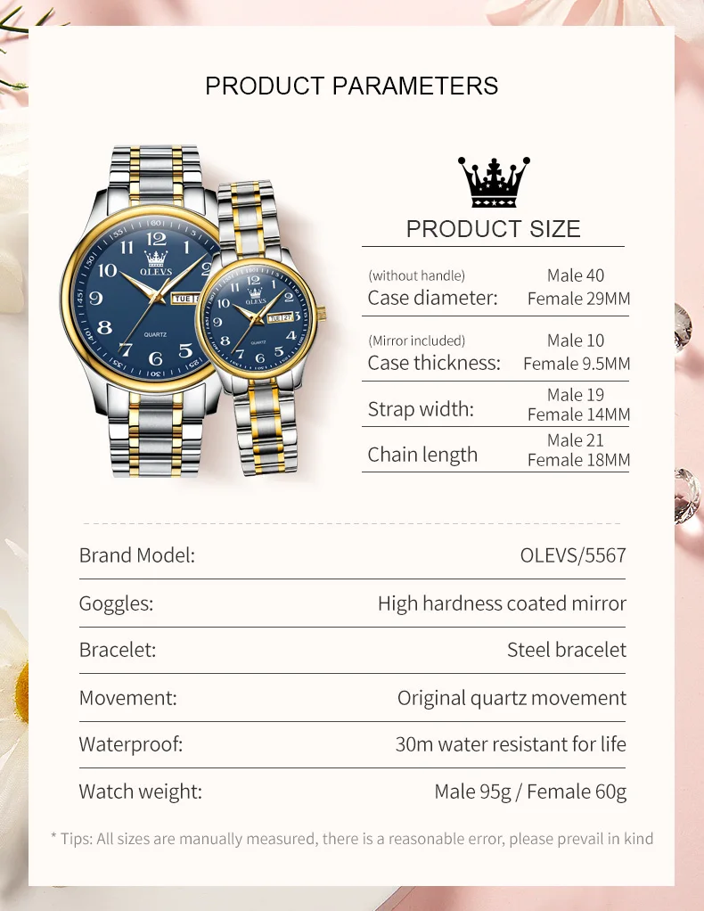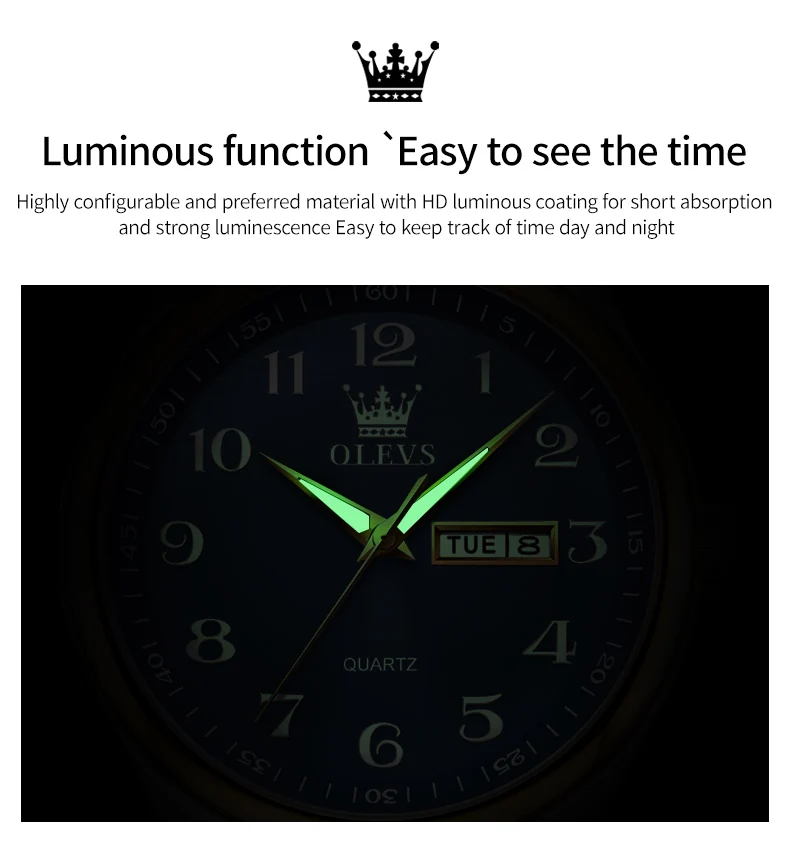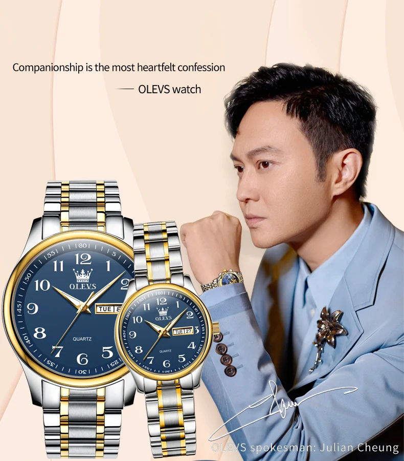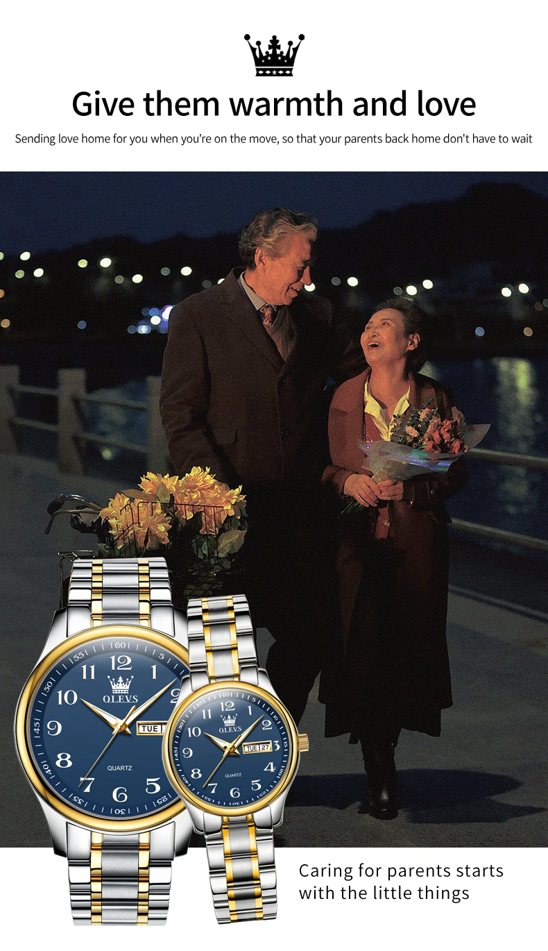 OLEVS 5567 Brand Couple Quartz Watches Waterproof Luminous Wristwatch for Lover Vip Link