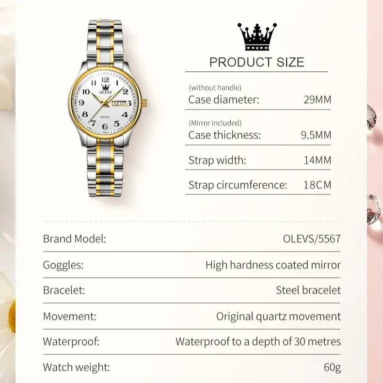 OLEVS Brand Ladies' Watch Quartz Watch Calendar Week Waterproof 5567