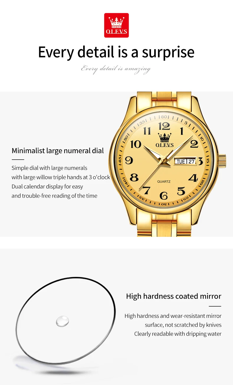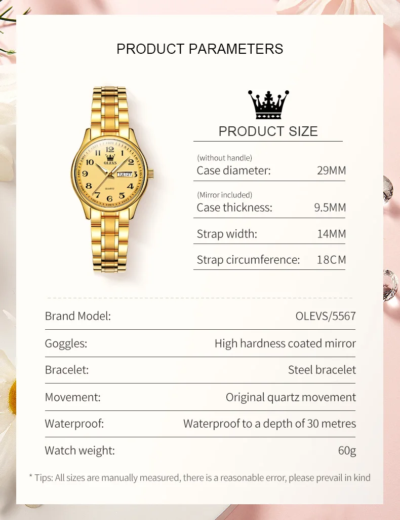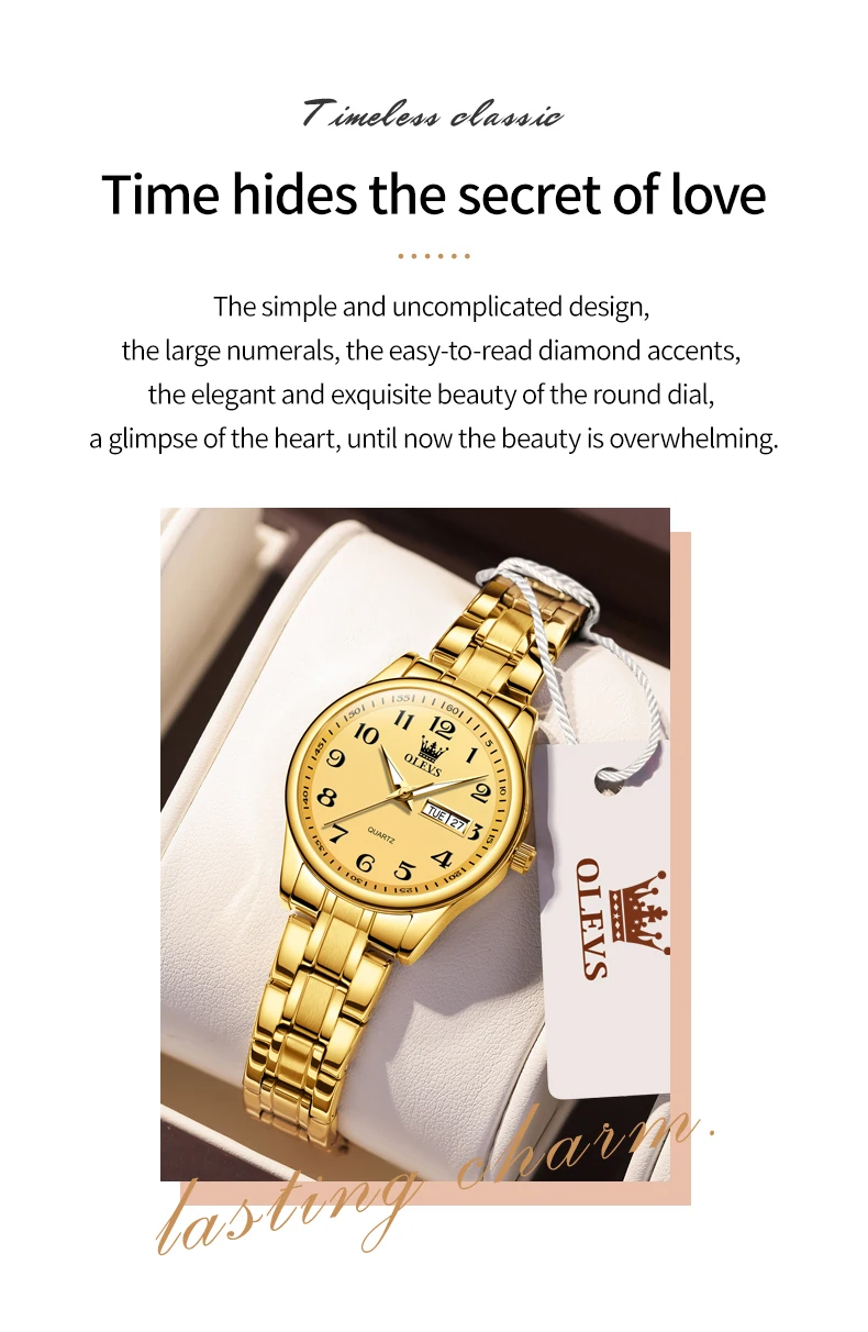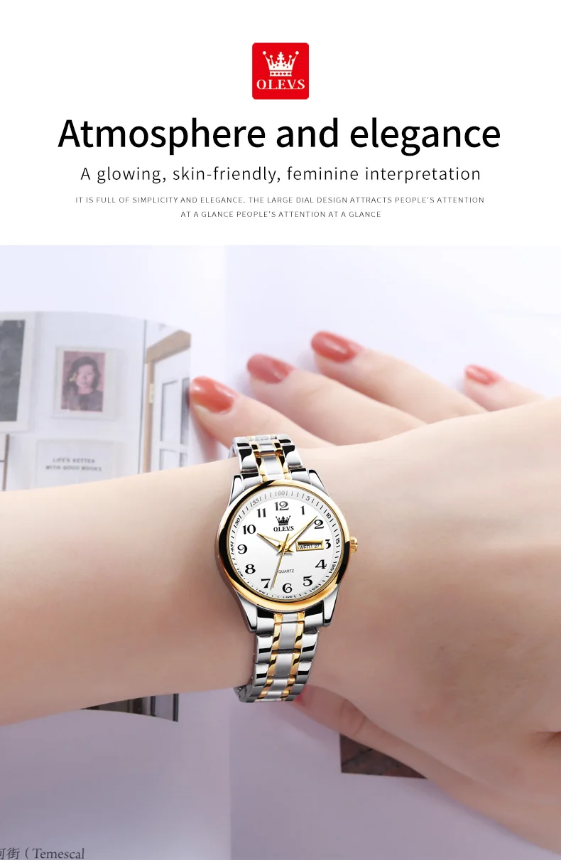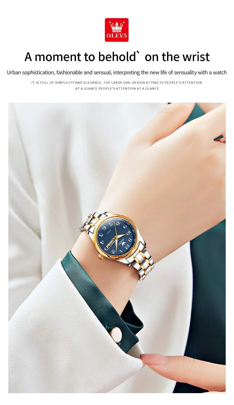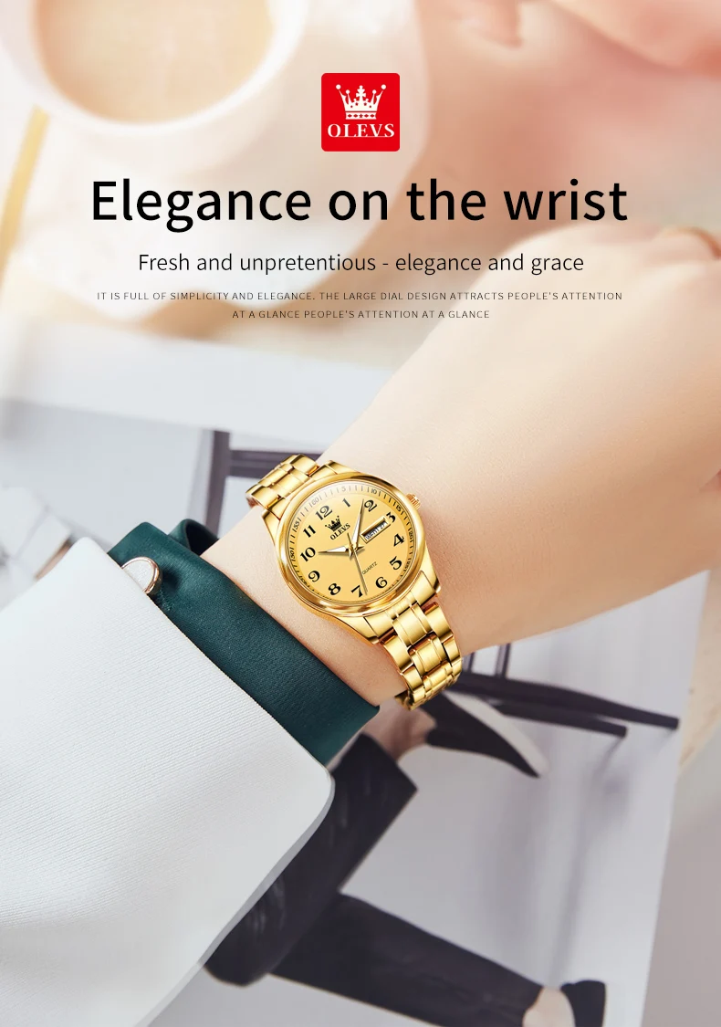 OLEVS 5567 Women’s Quartz Watches Simple Elegant Large Digital Dial Ladies Wristwatch Stainless