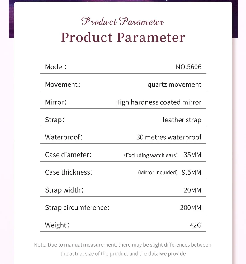 4. The watch size is measured manually, there is a certain degree of error, specific in kind shall prevail.
