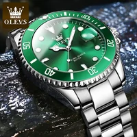 OLEVS 5885 Men’s Watches Business Stainless Steel Strap Green Quartz Watch Waterproof Calendar