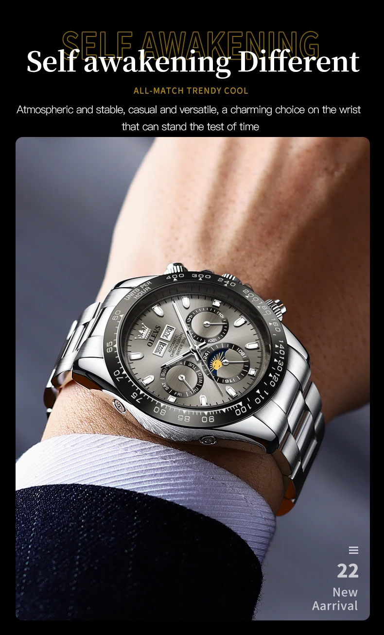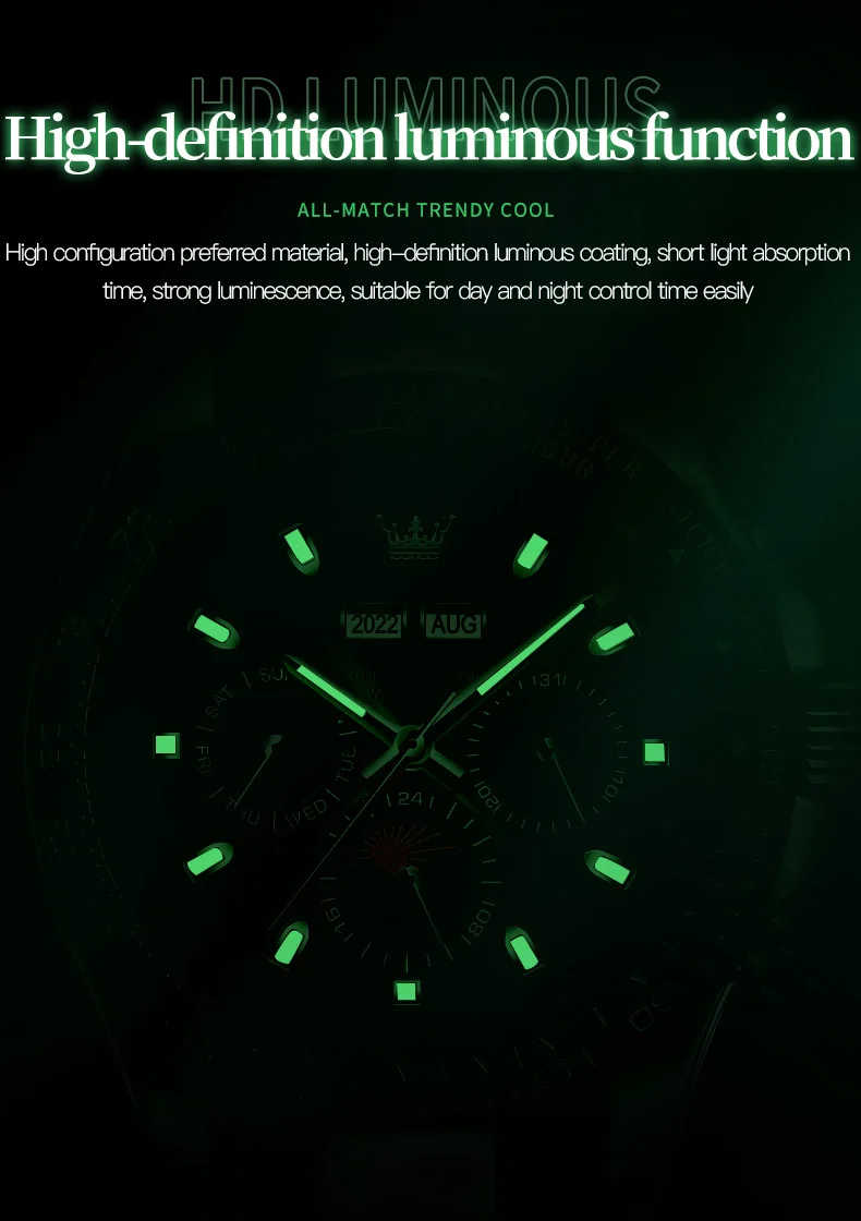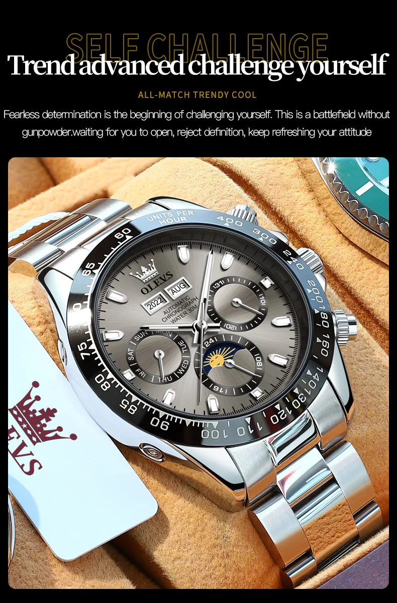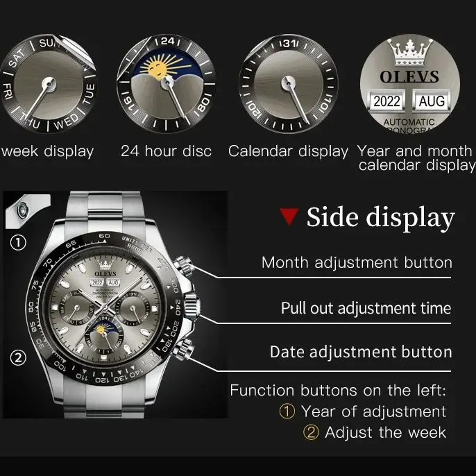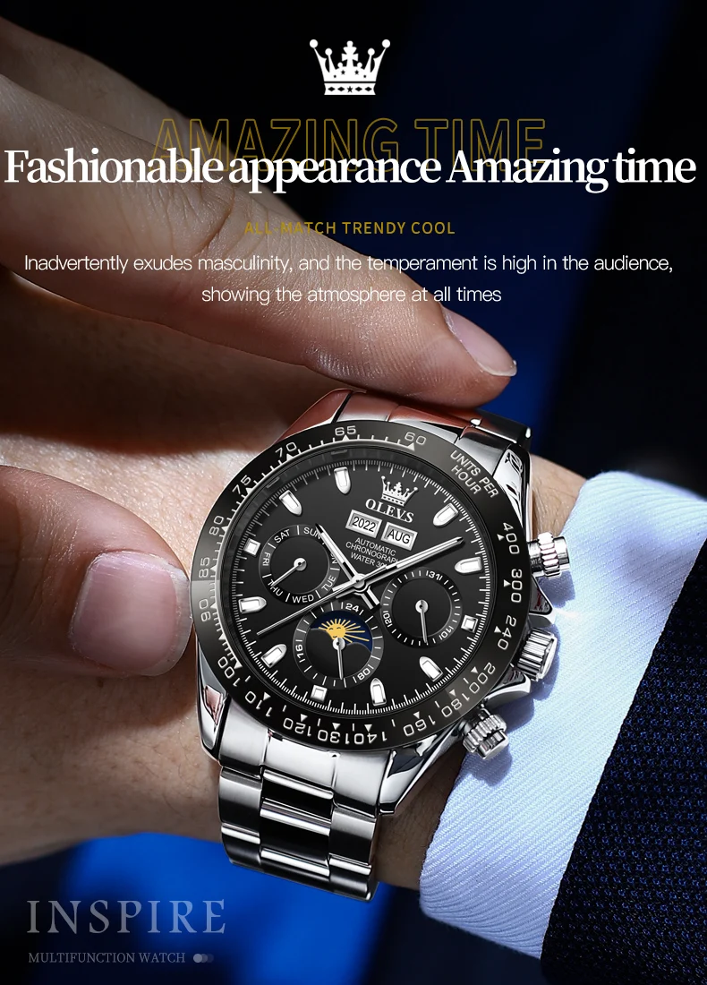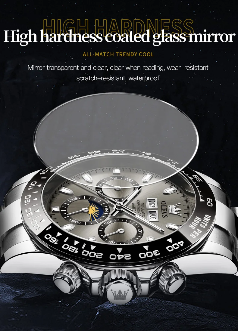 OLEVS 6654 Luxury Brand Men Automatic Mechanical Watch Stainless Steel Waterproof Date Moon Phase Timing Watch Sports Men Watch