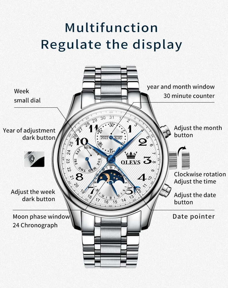 OLEVS 2958 Mens Watch Quartz Watch Multifunctional Tape Business Classic Watch For Men 30m Waterproof Luminous Box Gift