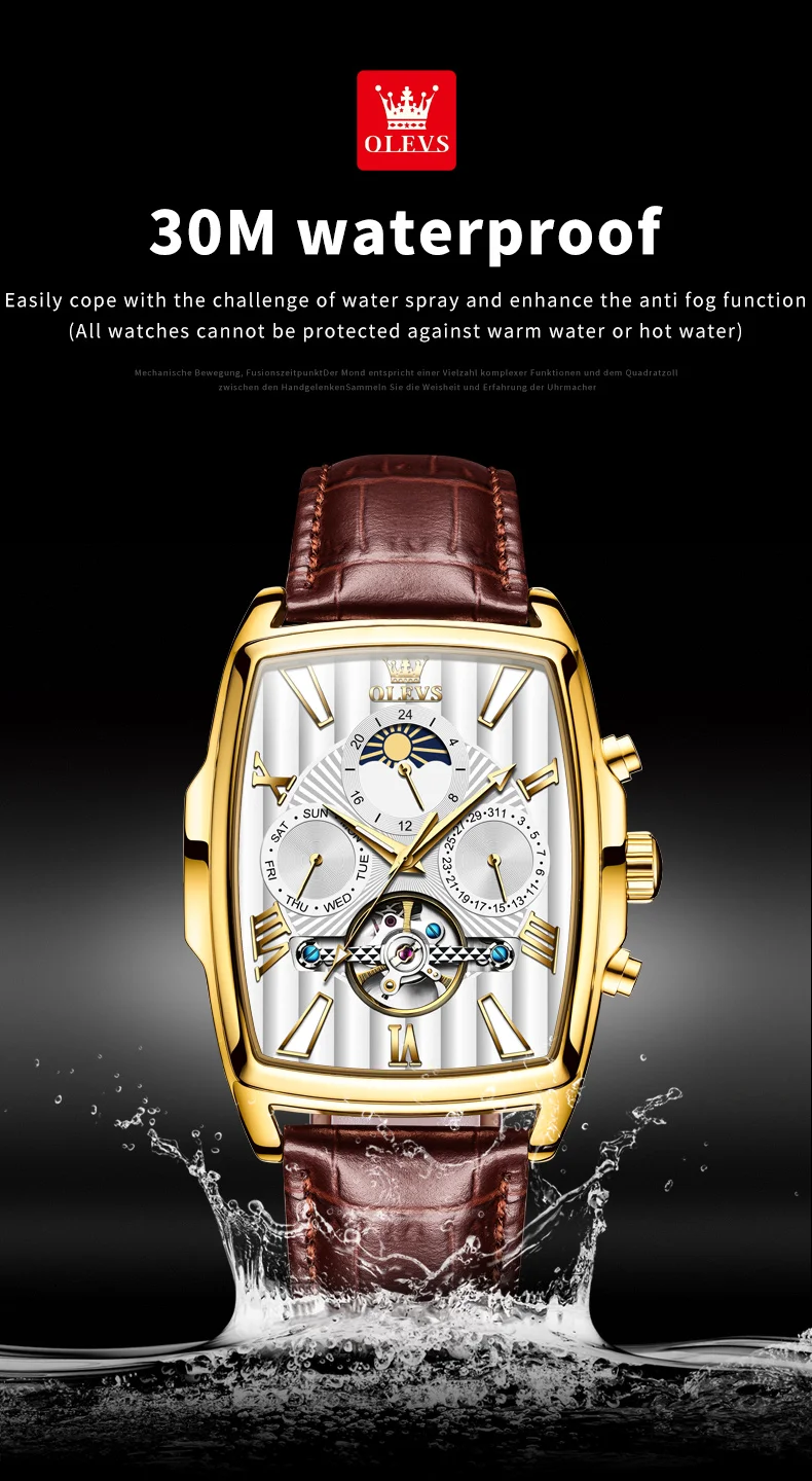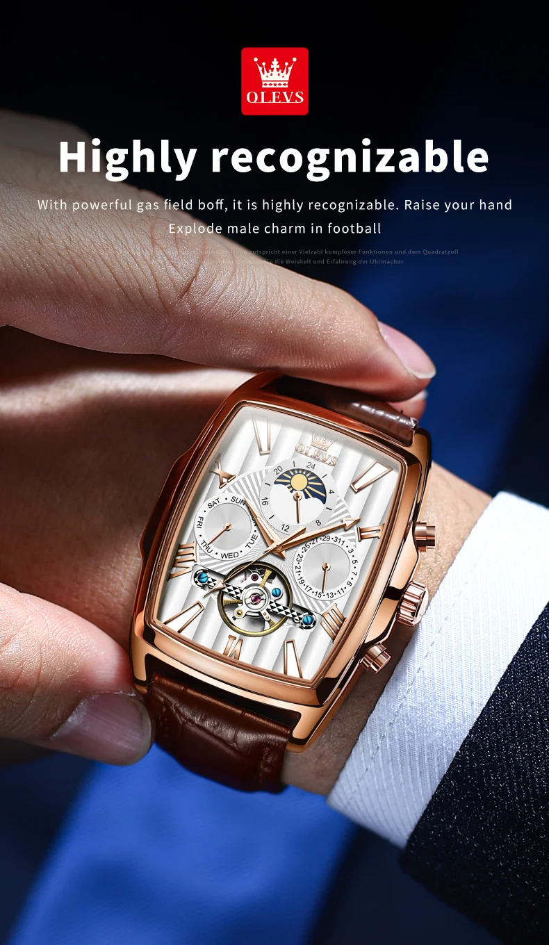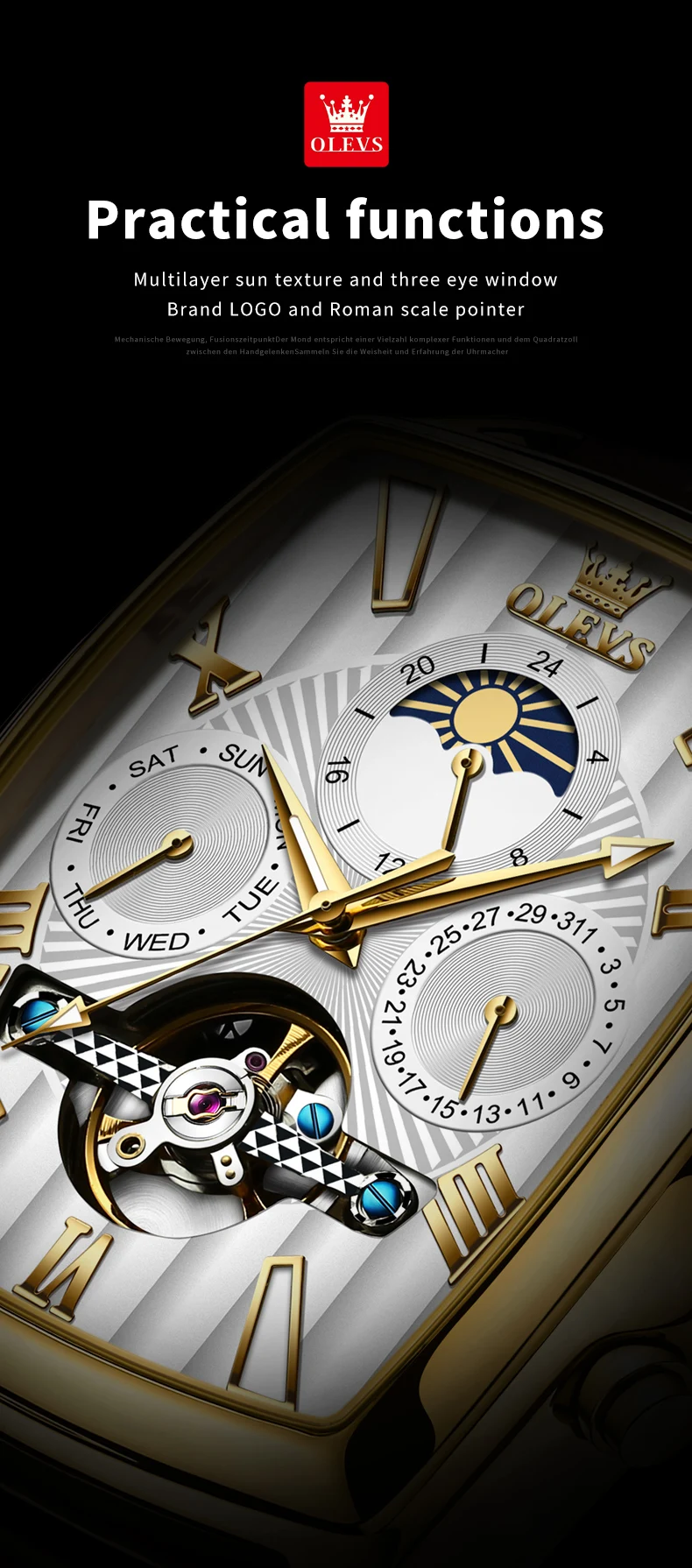 OLEVS 6675 Men High Watch HD Skeleton Business Original Mechanical Watch Fashion Automatic Date Waterproof Moonphase Men Watch