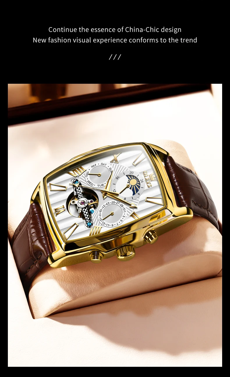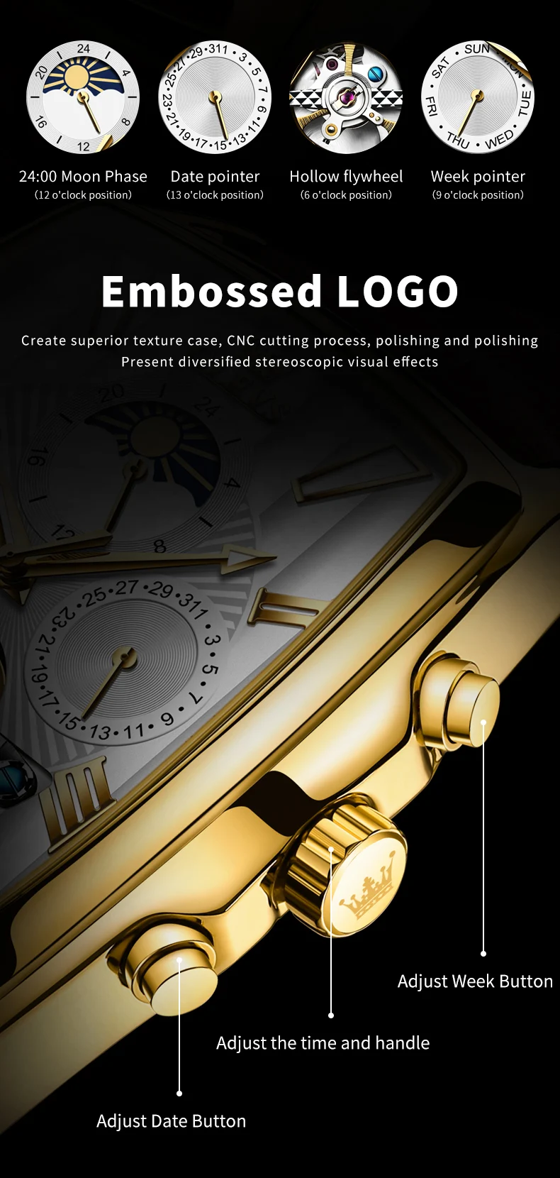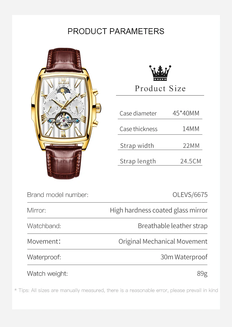 OLEVS 6675 Men High Watch HD Skeleton Business Original Mechanical Watch Fashion Automatic Date Waterproof Moonphase Men Watch