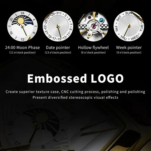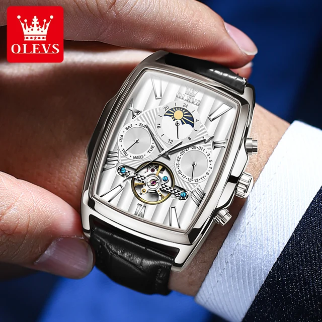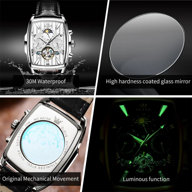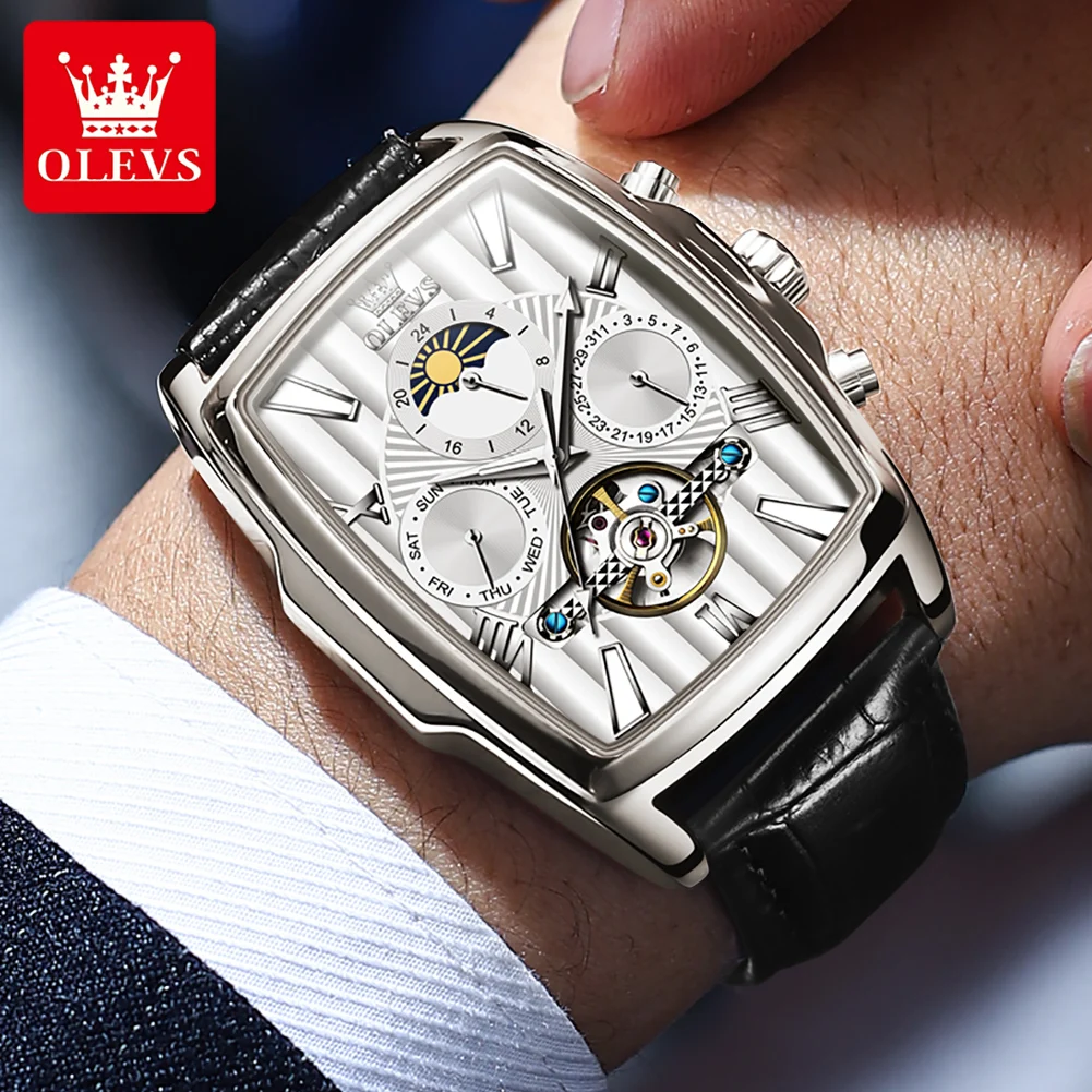 OLEVS 6675 Men High Watch HD Skeleton Business Original Mechanical Watch Fashion Automatic Date Waterproof Moonphase Men Watch