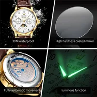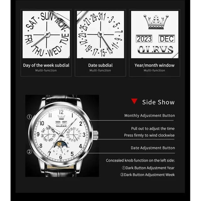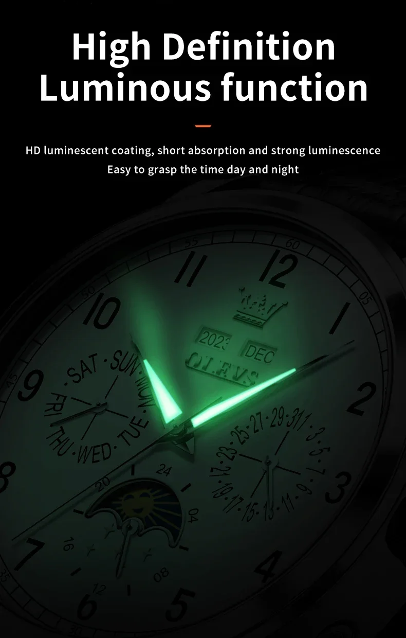OLEVS 6698 Moonswatch Mechanical Man Wristwatch Number Scale Fashion Waterproof Watch Men Week Date Display