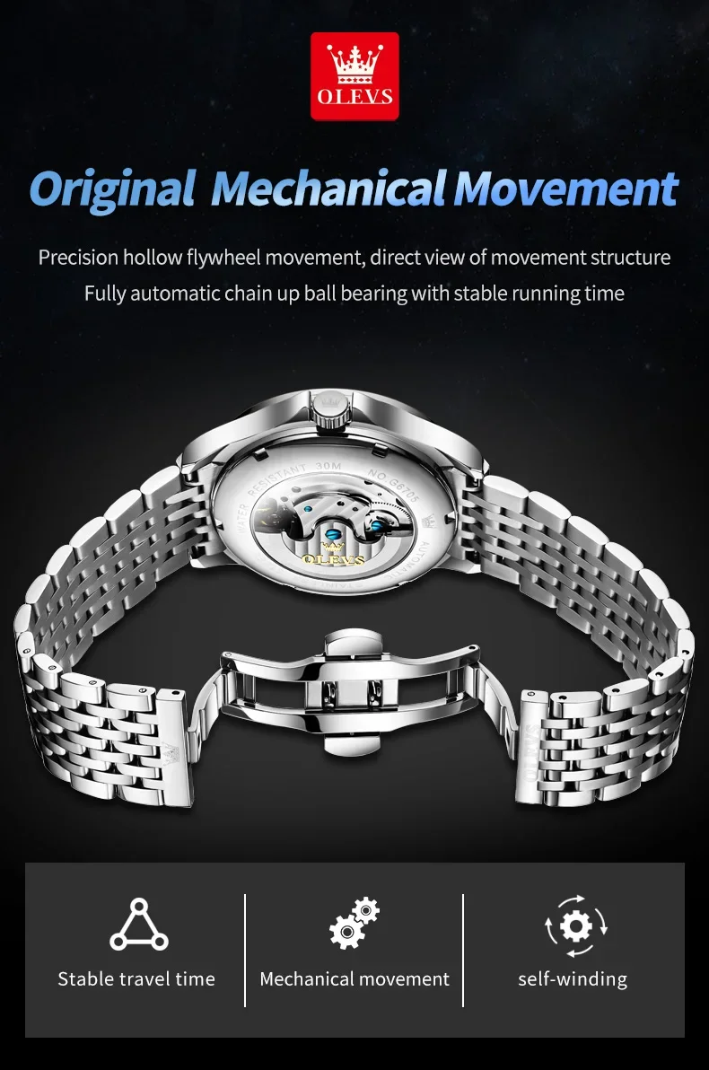 Olevs 6705 top business man Watch stainless steel automatic Business watch men high quality mechanical