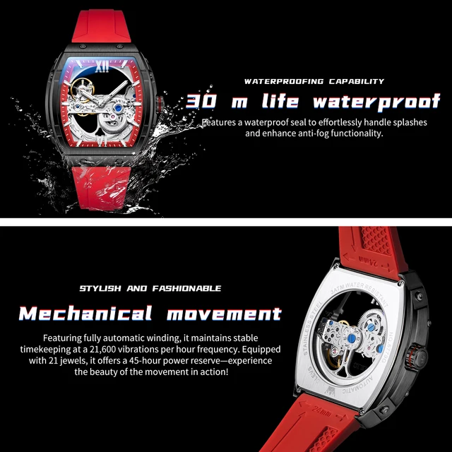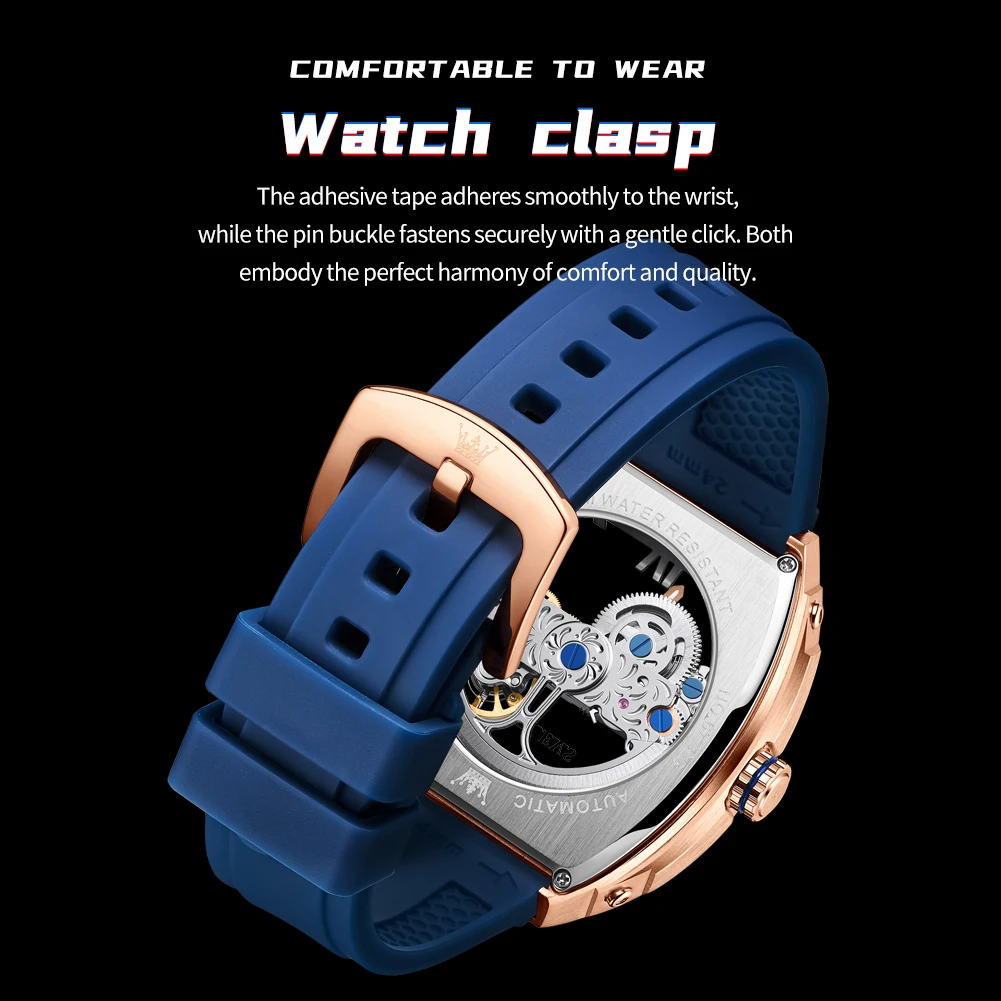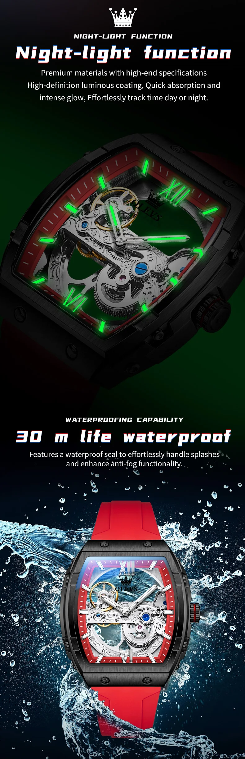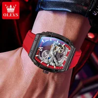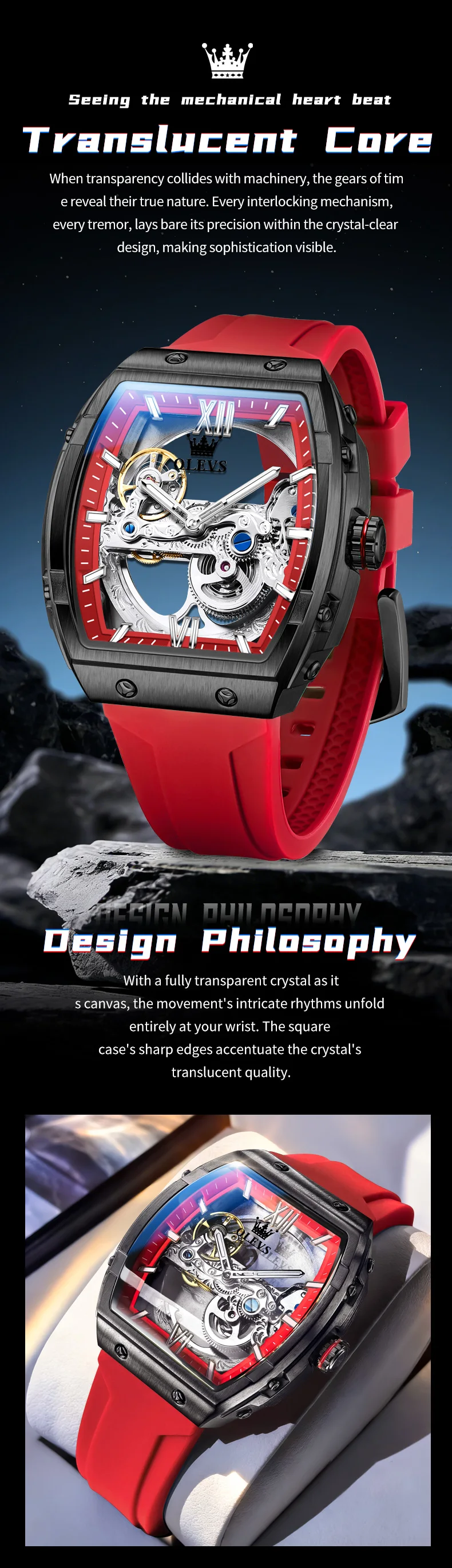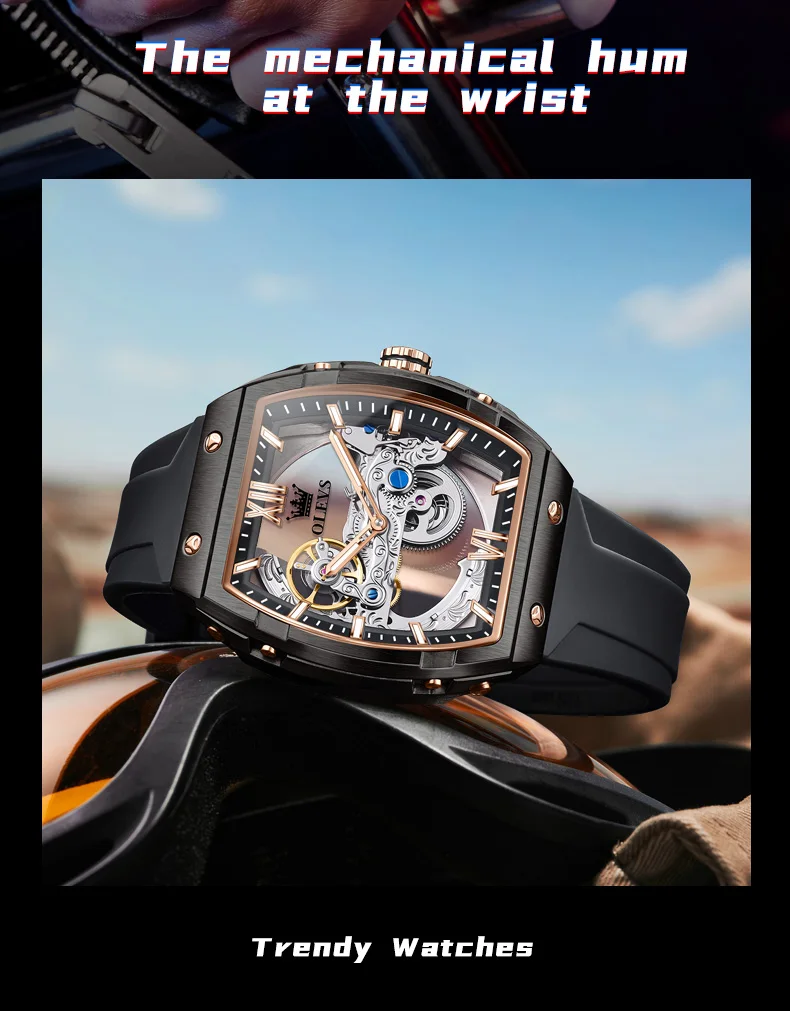 OLEVS 6779 Men Watch Translucent Core Mechanical Movement Square Case Wine Barrel Night Light Function Waterproof Watch For Men