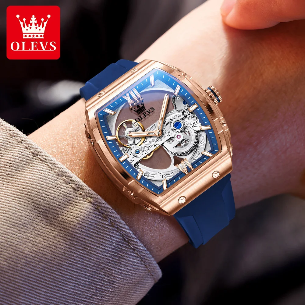 OLEVS 6779 Transparent Hollow Mechanical Men's Watches Fashion Luxury Silicone Strap Waterproof Skeleton Automatic Watch For Man