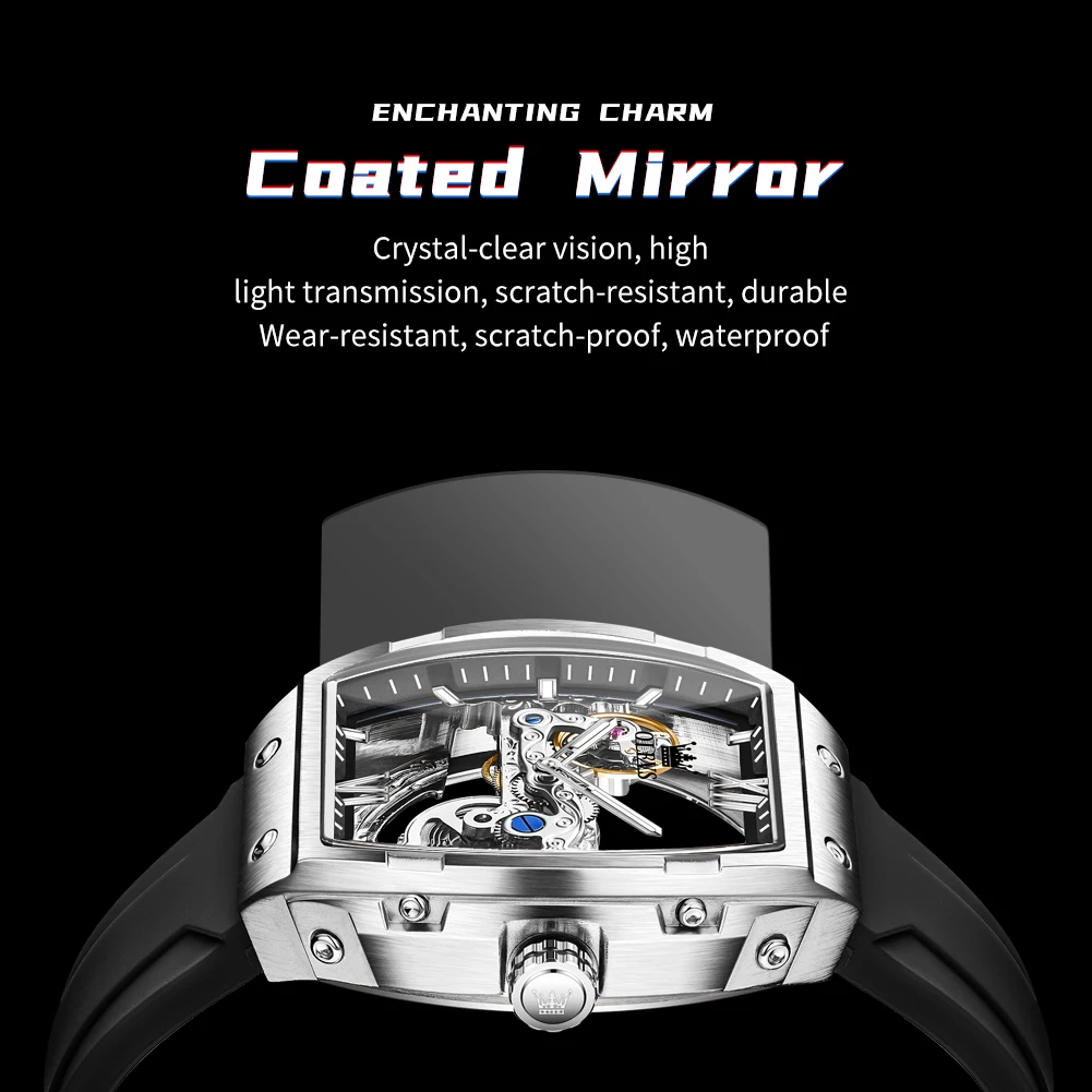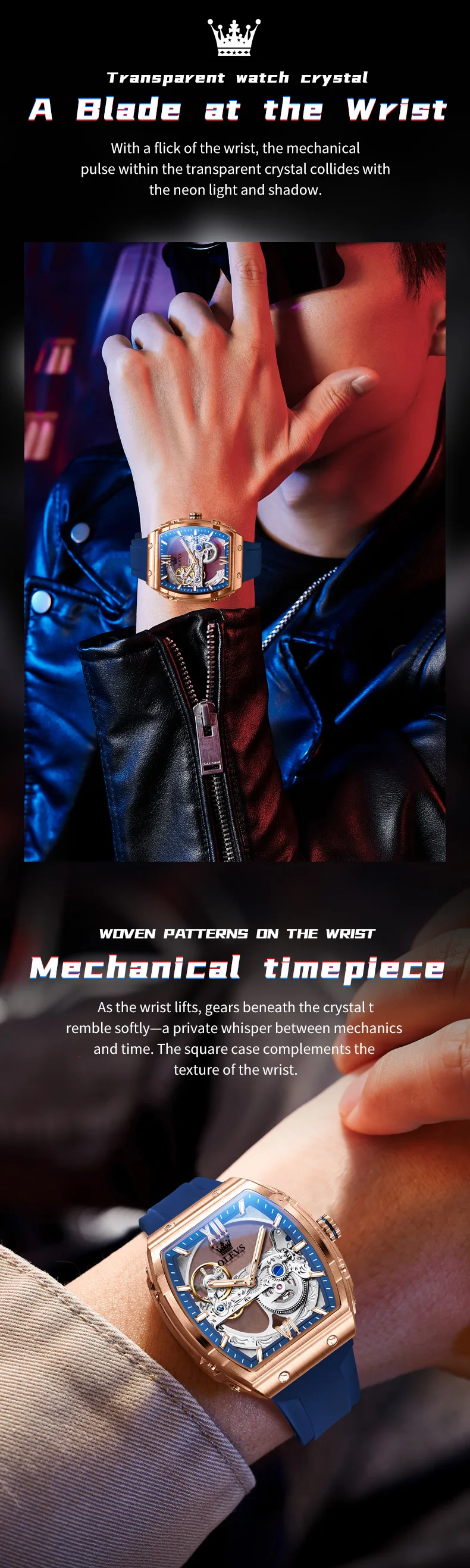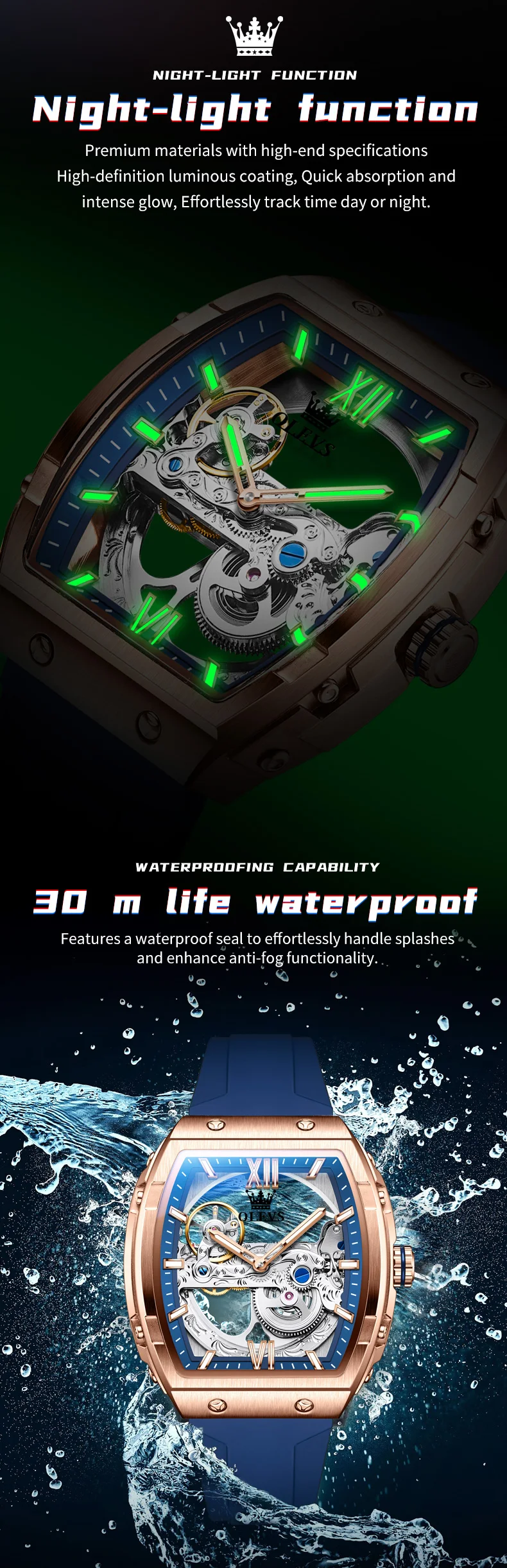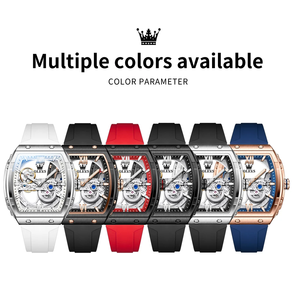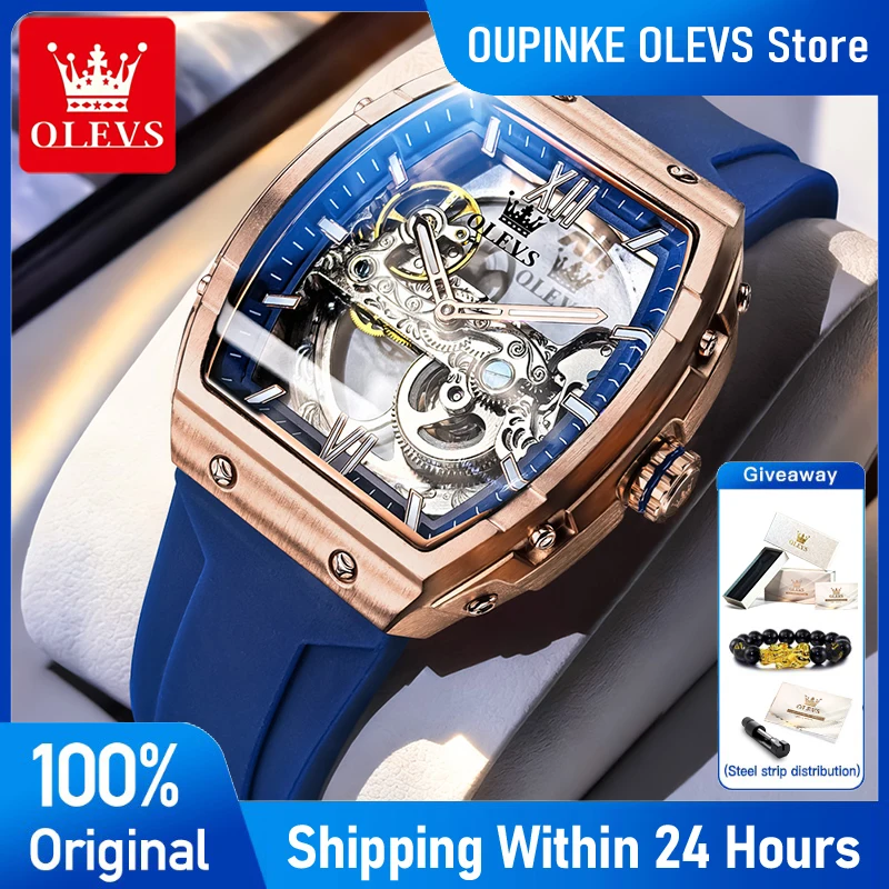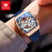 OLEVS 6779 Mens Watch Luxury Skeleton Original Automatic Mechanical Watch Silicone Strap Sports Watches