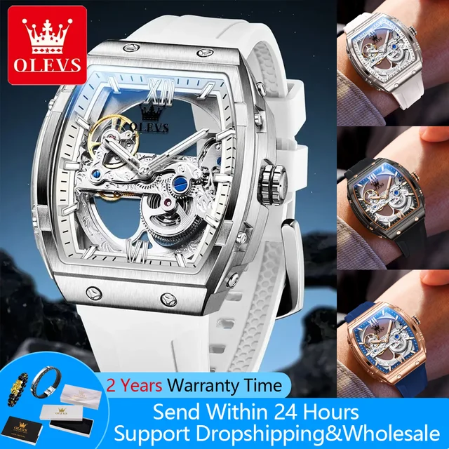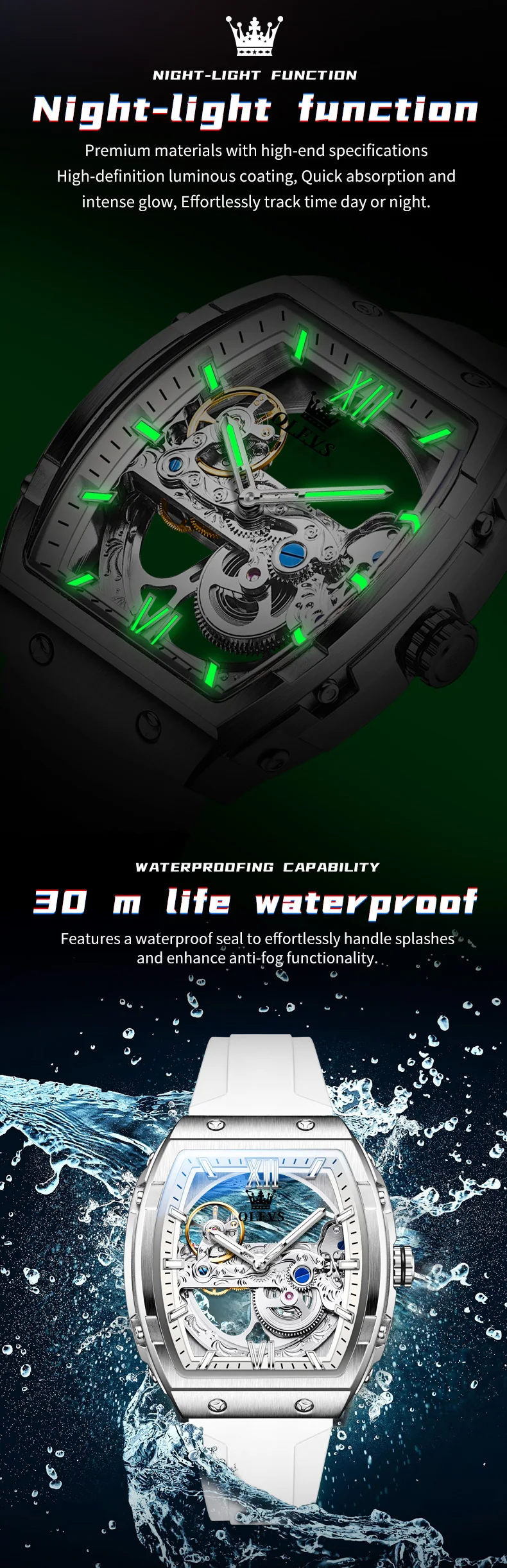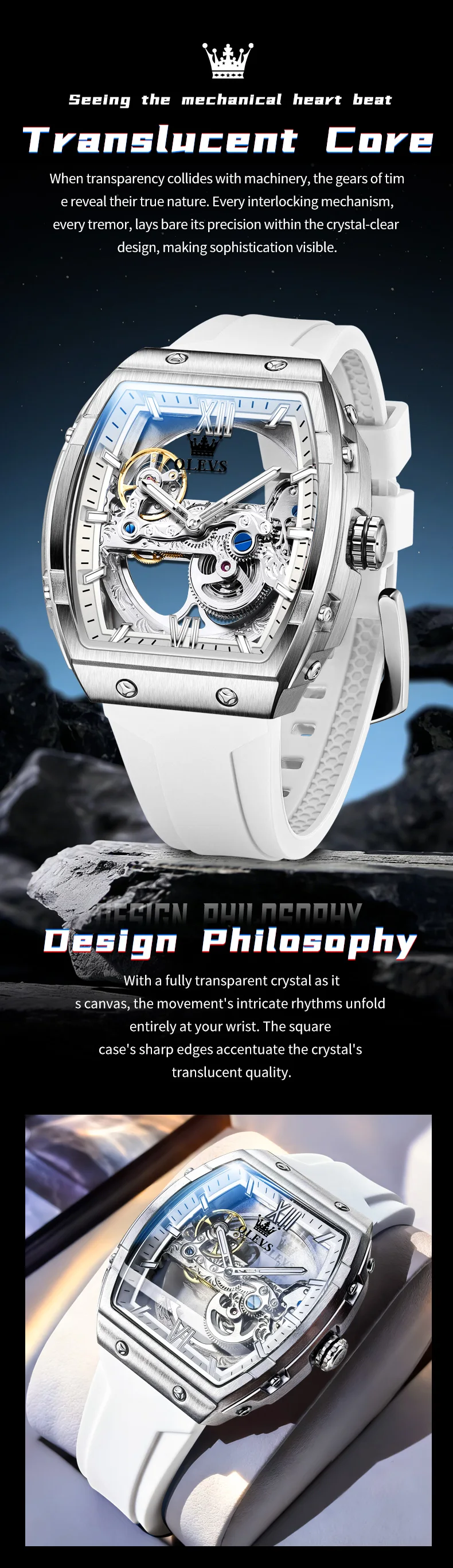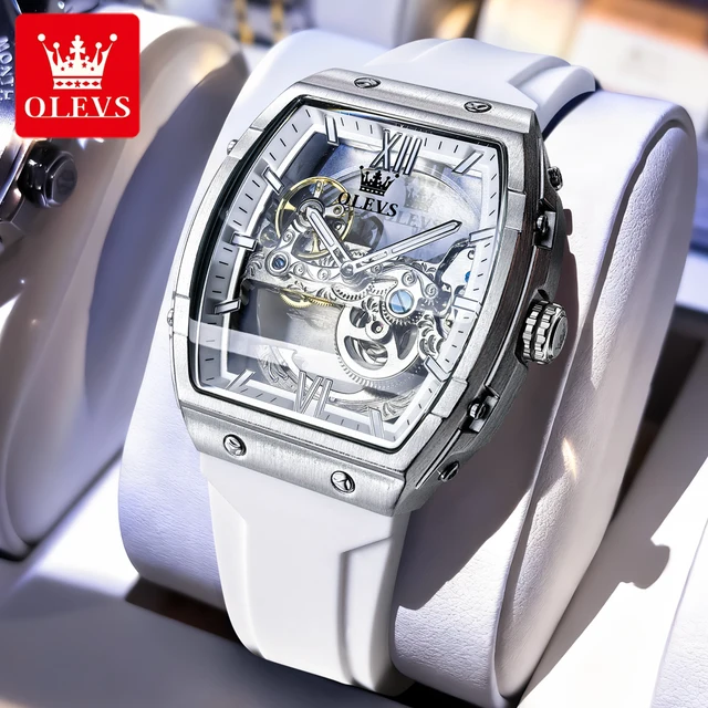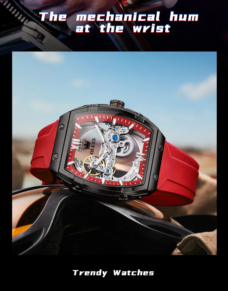 OLEVS 6779 Transparent Hollow Mechanical Men’s Watches Fashion Luxury Silicone Strap Waterproof