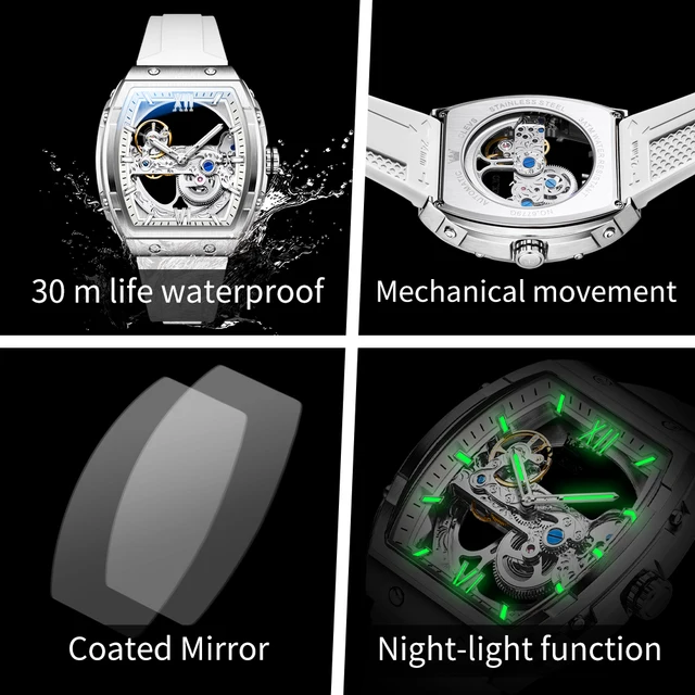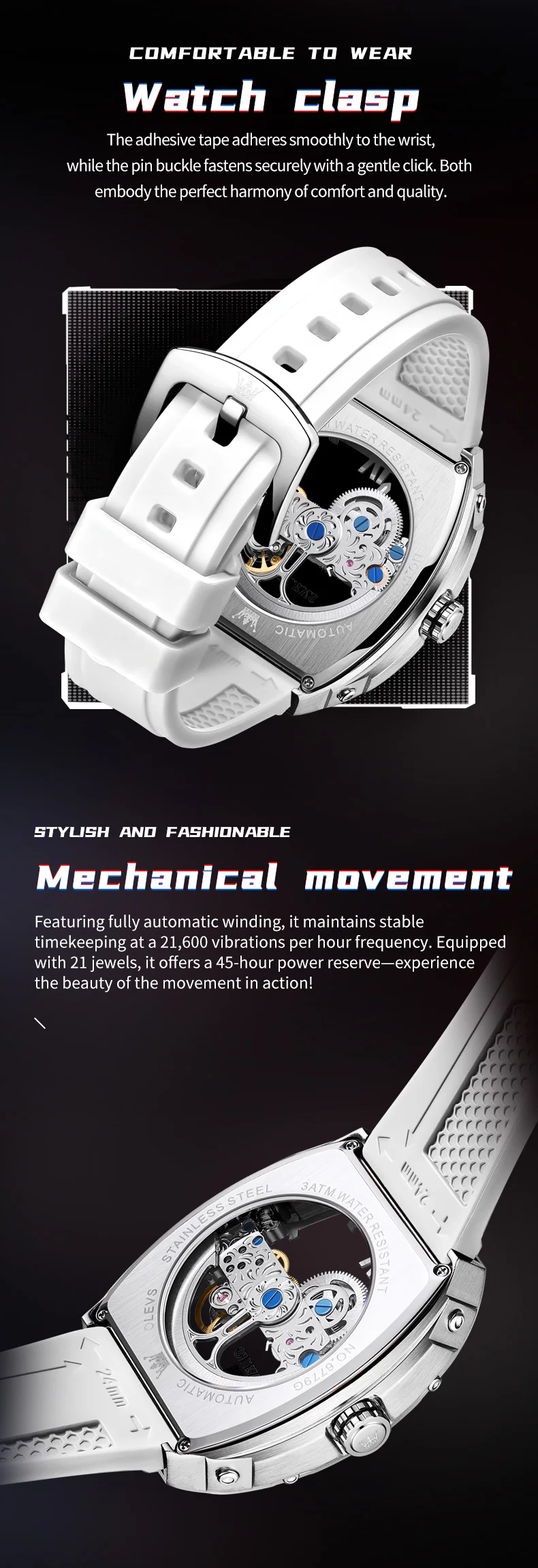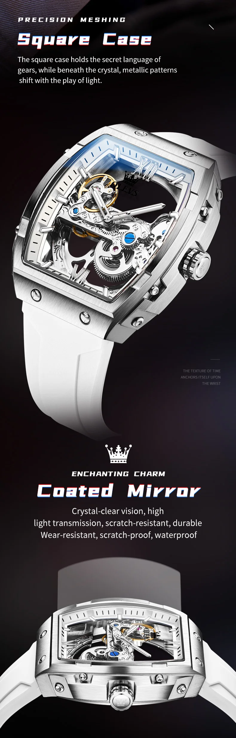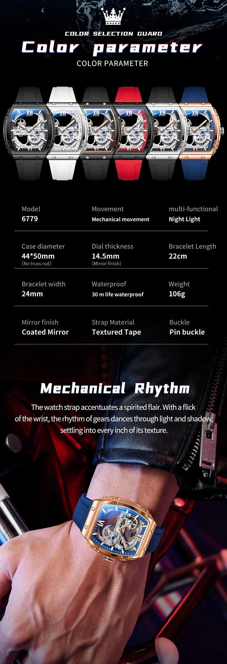 OLEVS 6779 Transparent Hollow Mechanical Men’s Watches Fashion Luxury Silicone Strap Waterproof