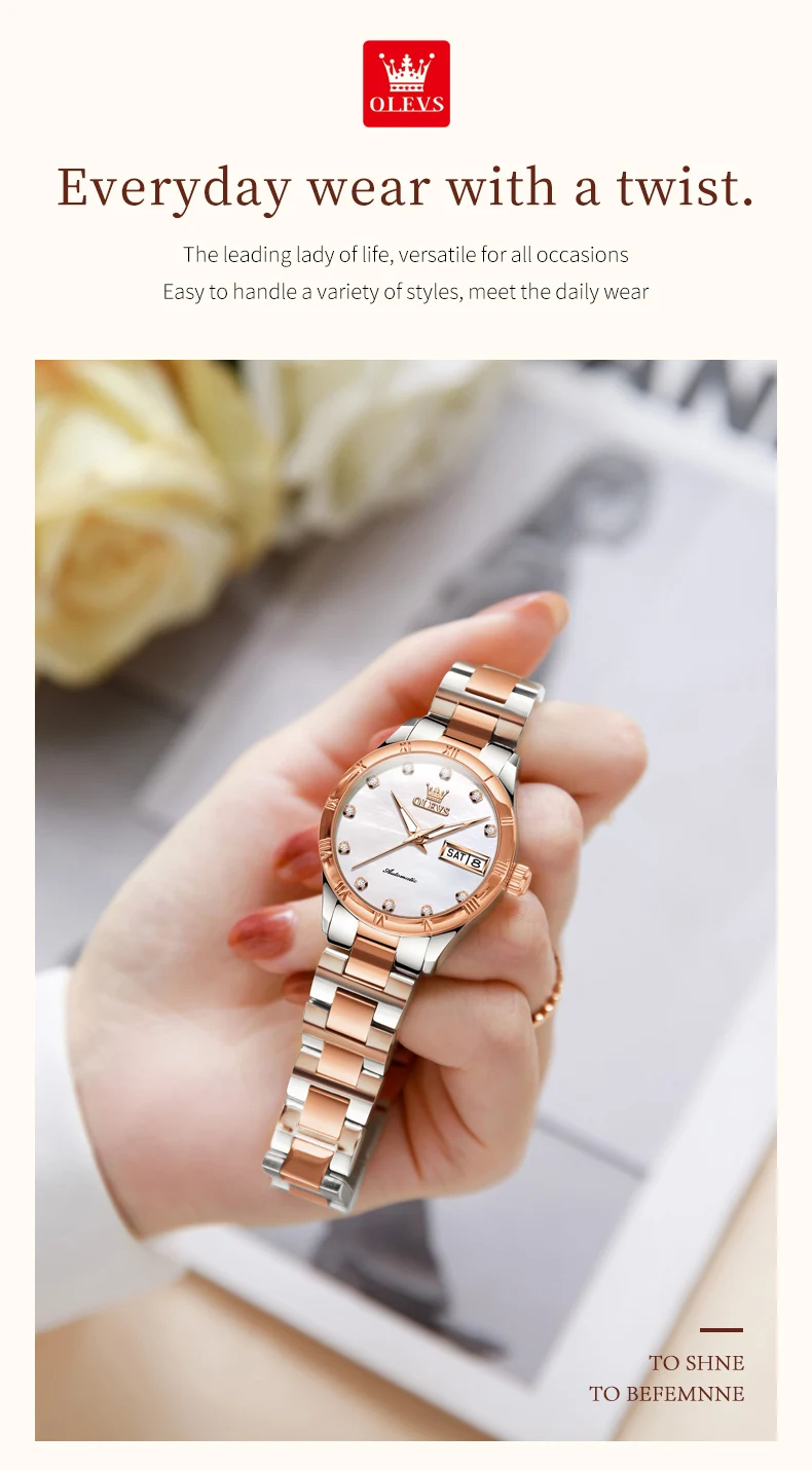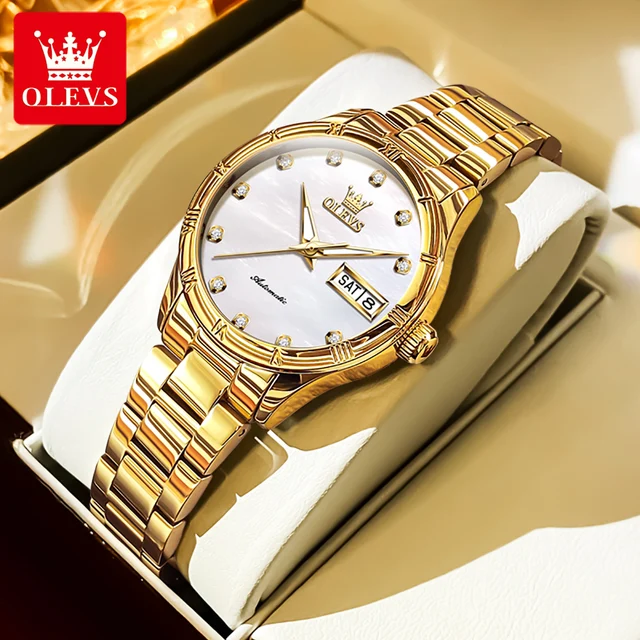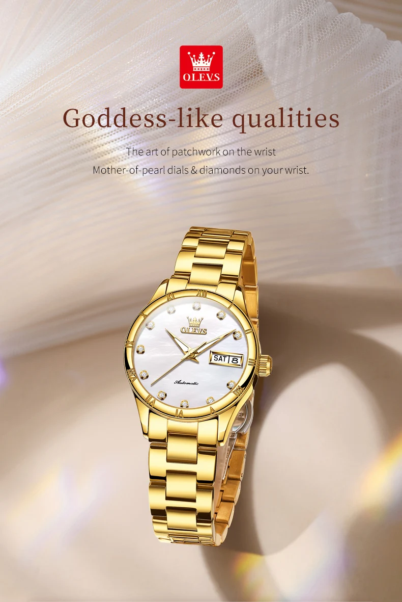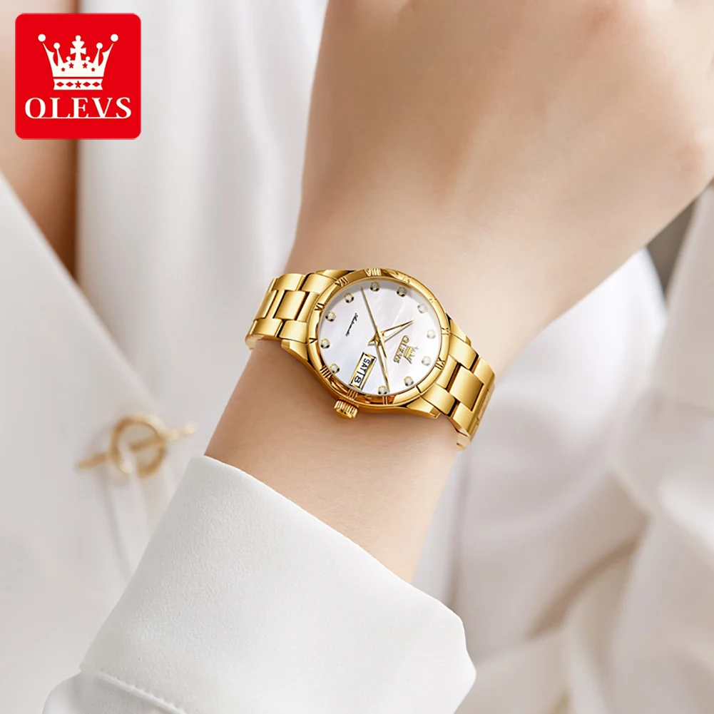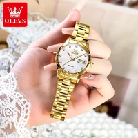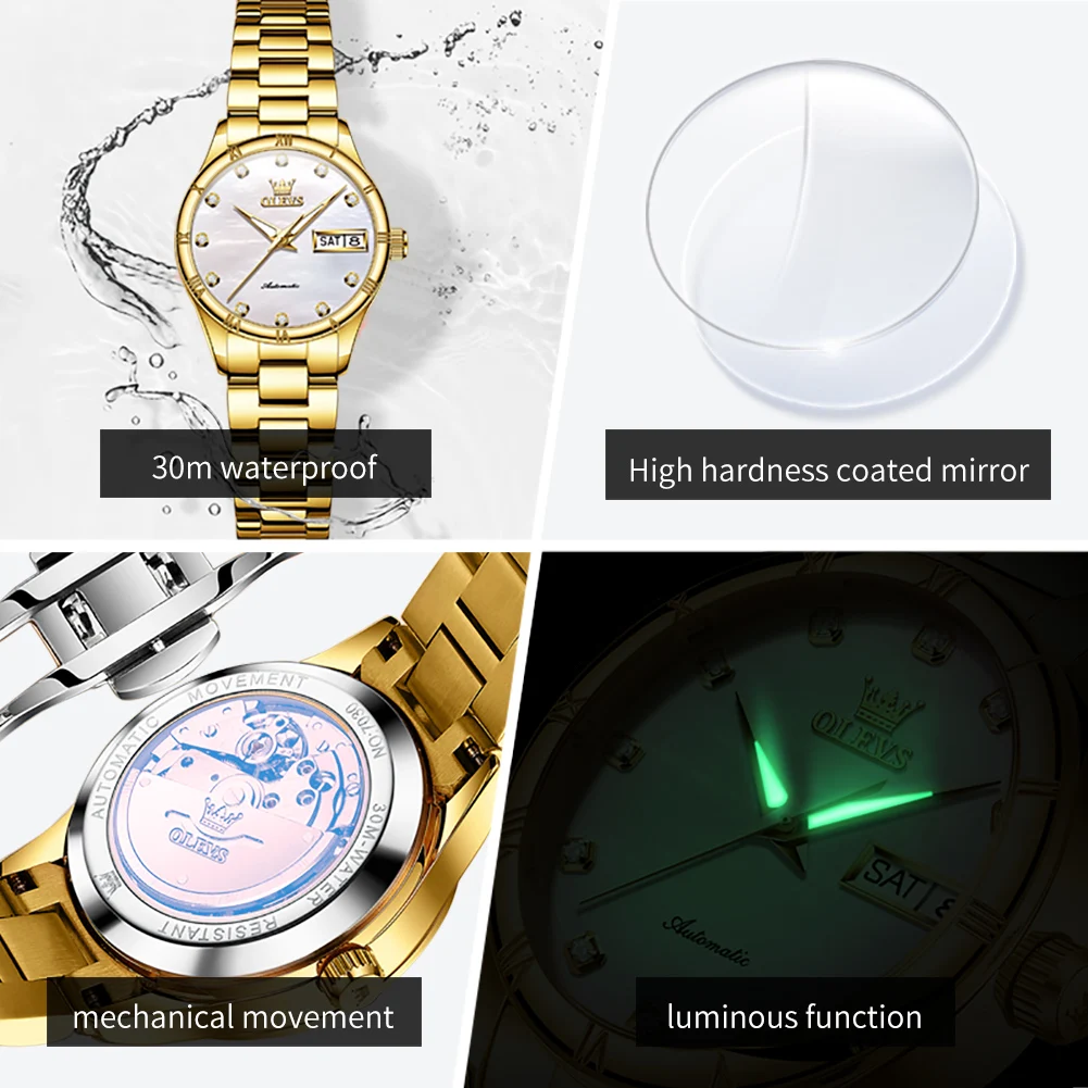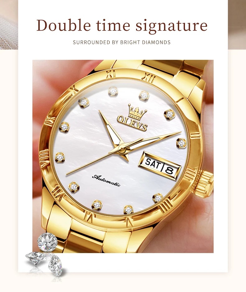 OLEVS 7030 Luxury Woman Watch Dual Calendar Automatic Watch For Women Stainless Steel Waterproof Diamond
