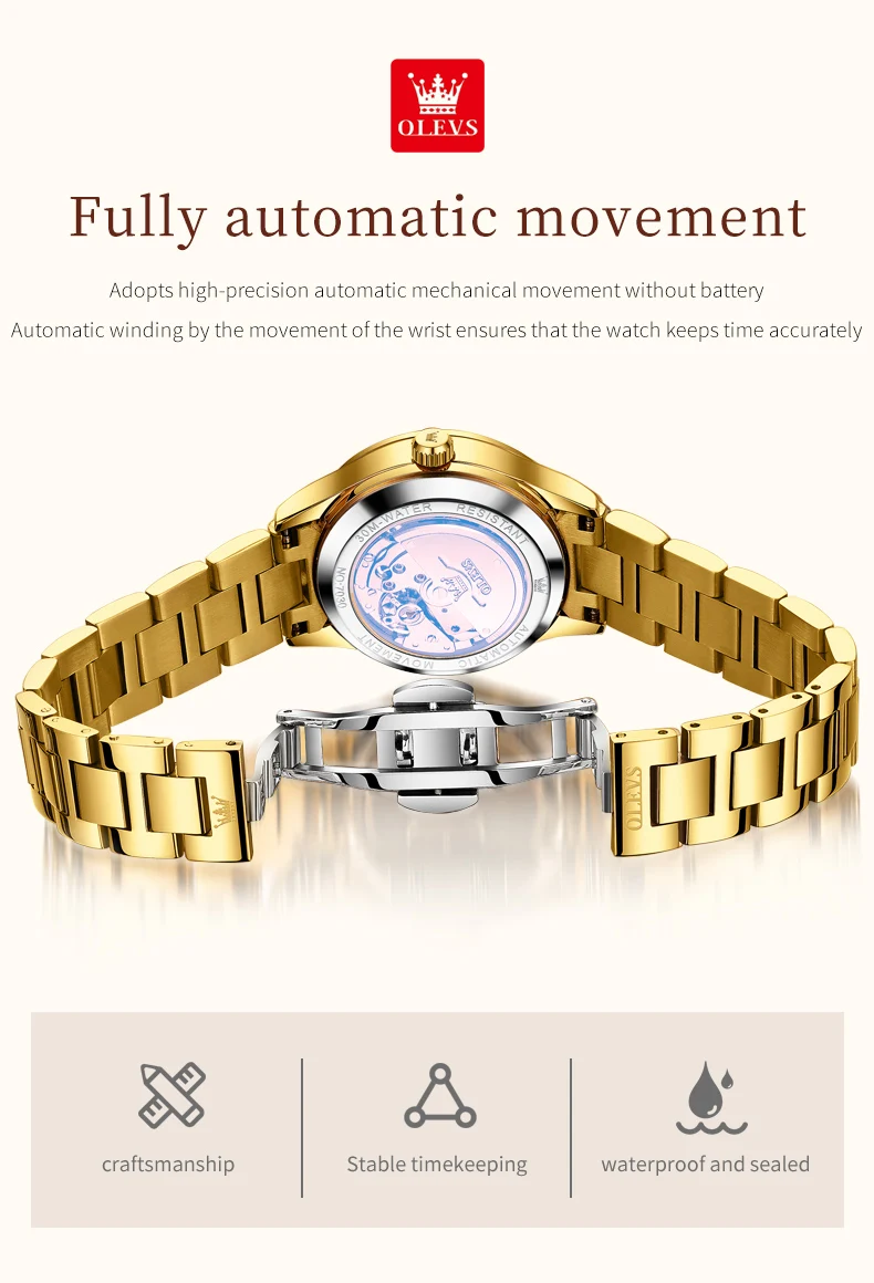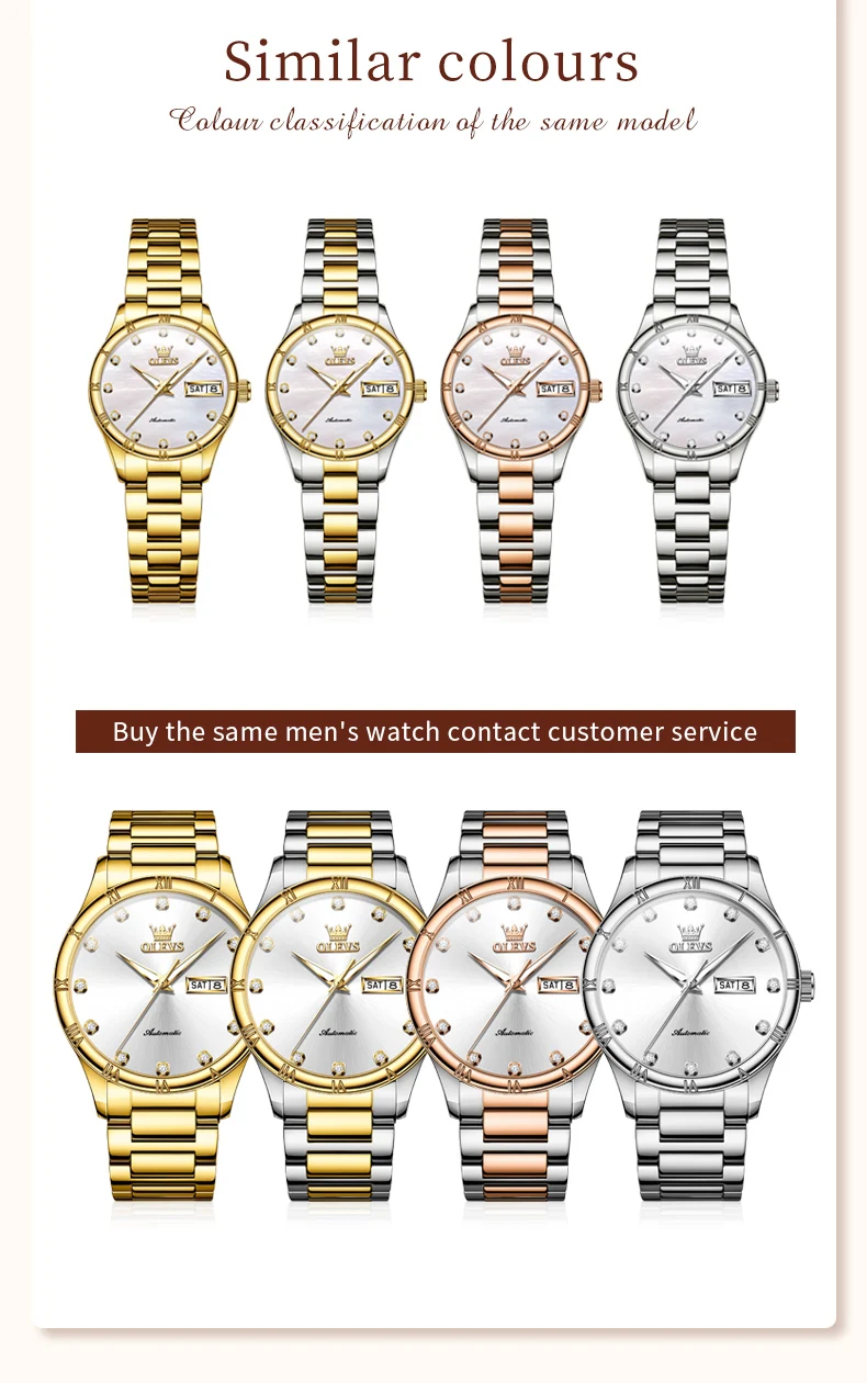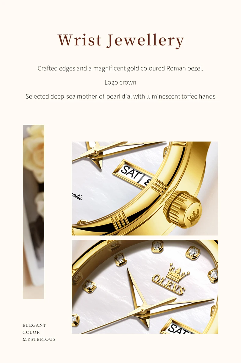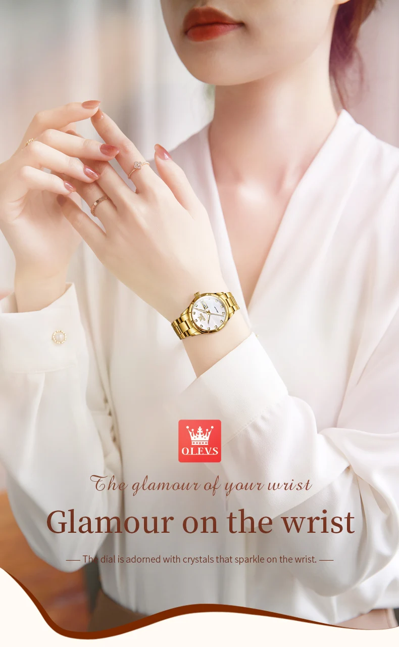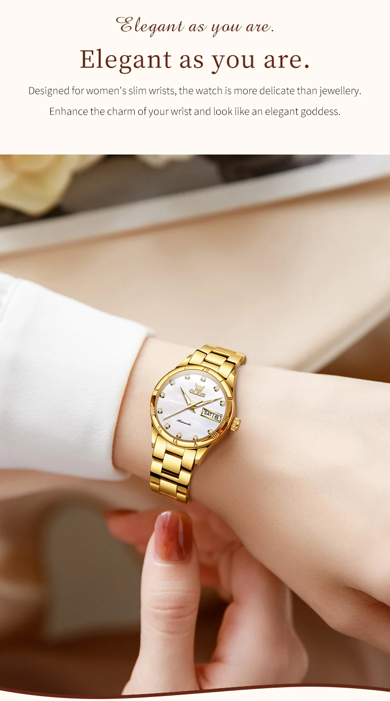 OLEVS 7030 Luxury Woman Watch Dual Calendar Automatic Watch For Women Stainless Steel Waterproof Diamond
