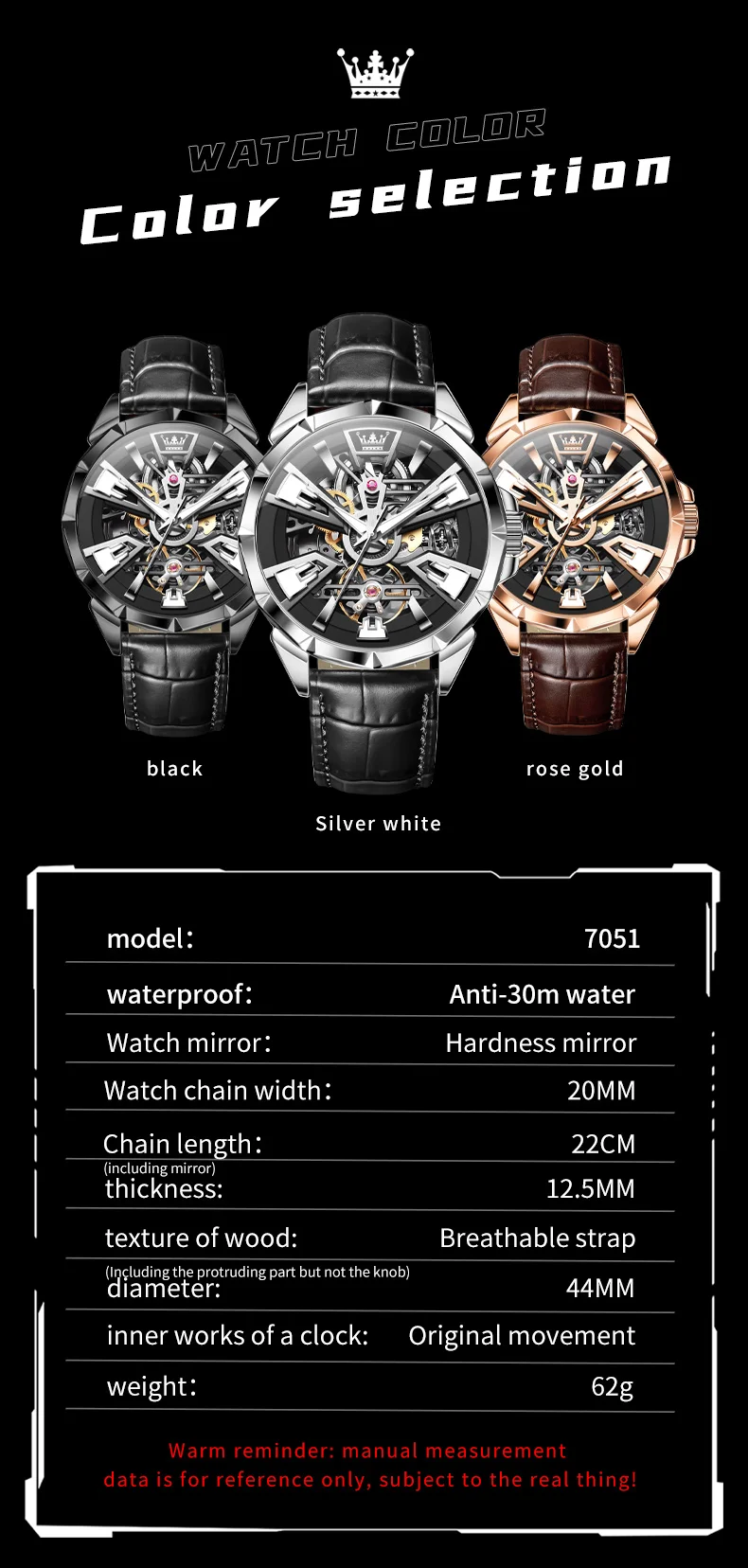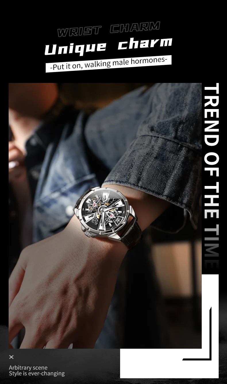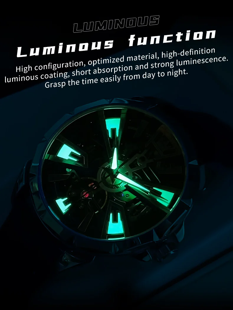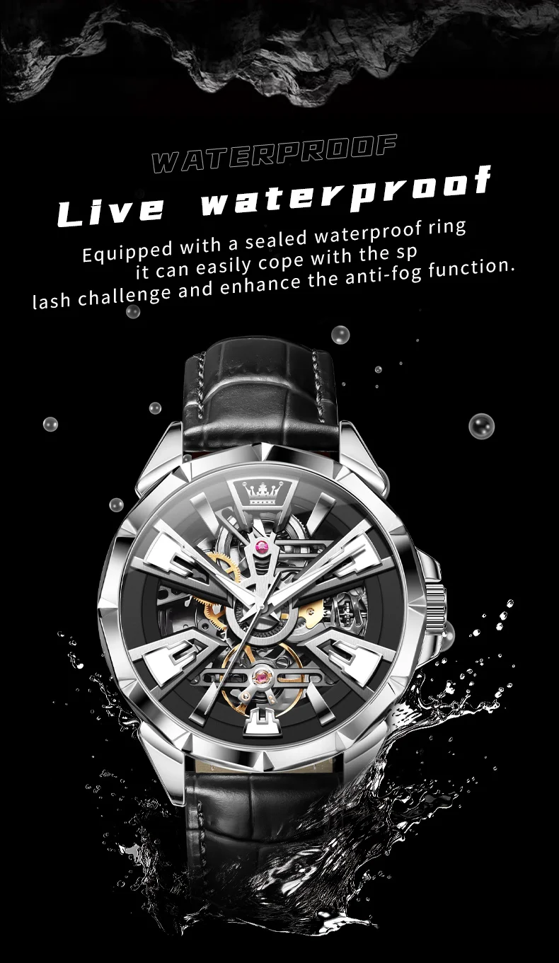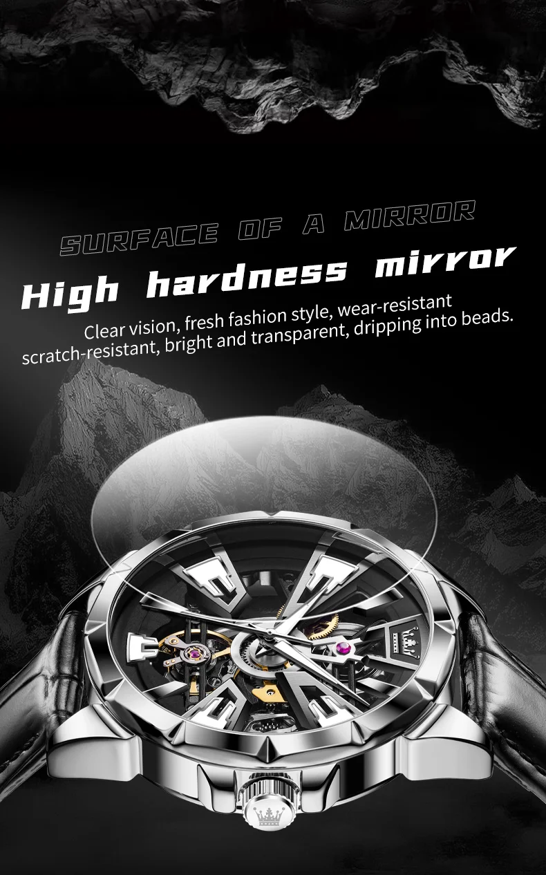 OLEVS 7051 Fashion Men’s Watch Leather Strap 30M waterproof Hollow HD Luminous Automatic Mechanical